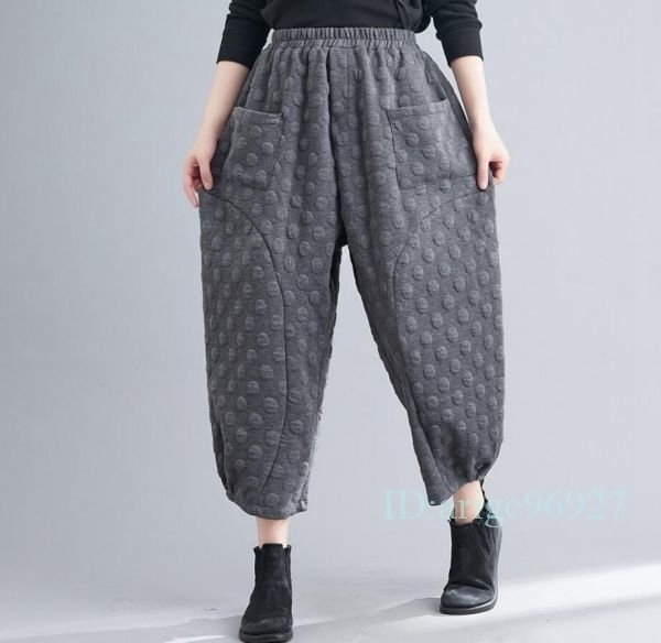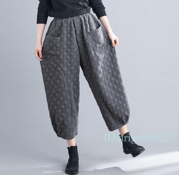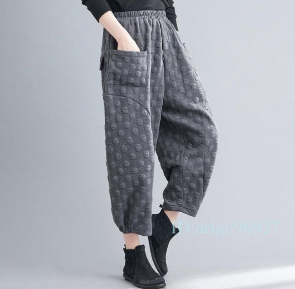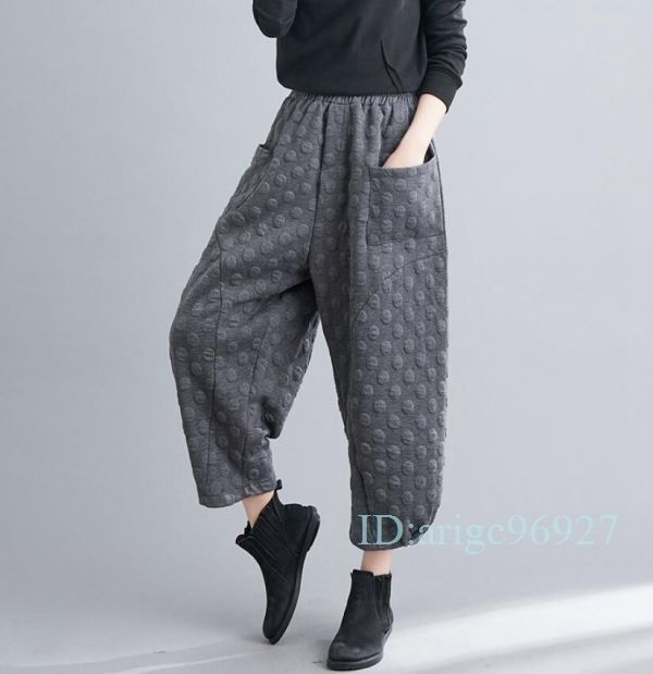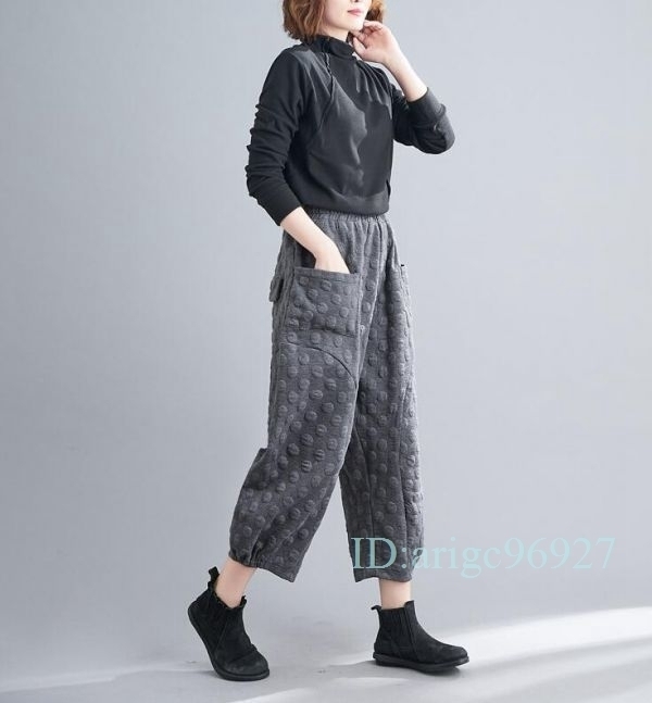 122★フリーサイズ 秋冬 20304050代 ウエストゴム カジュアル ゆったり パンツ 厚地 ボトムス おしゃれ★黒