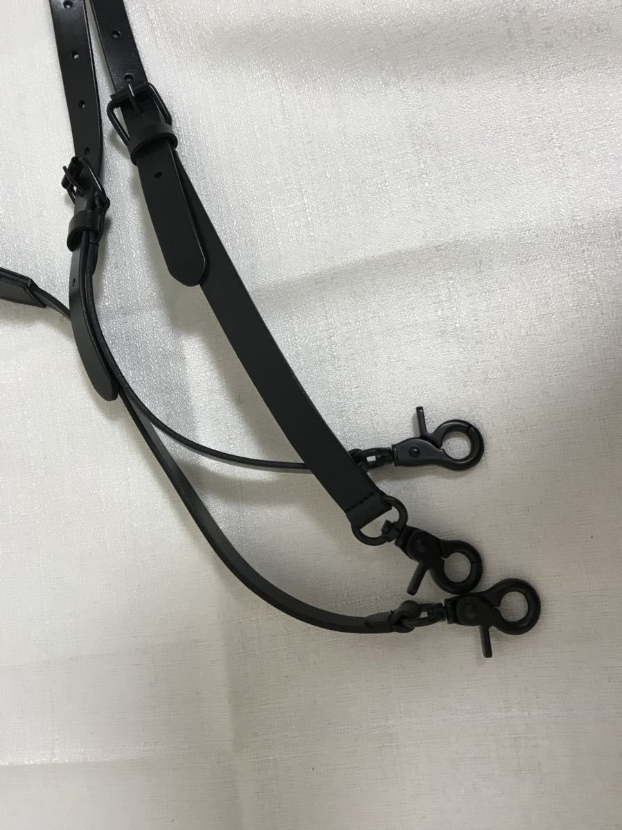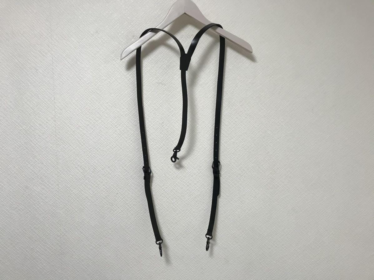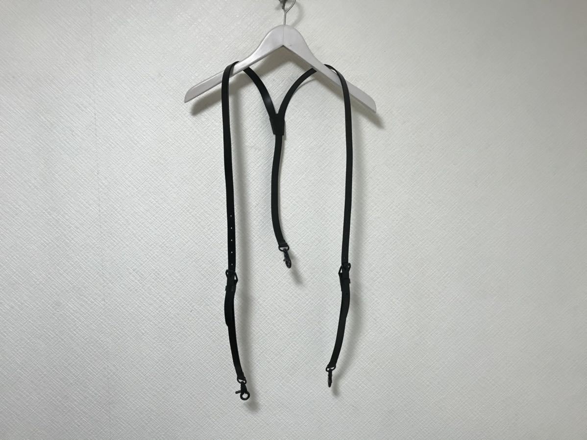 新品未使用本物セレブレザー本革牛皮レザーサスペンダーベルトデニムパンツ黒ブラックLメンズ手作りハンドメイドフック金具