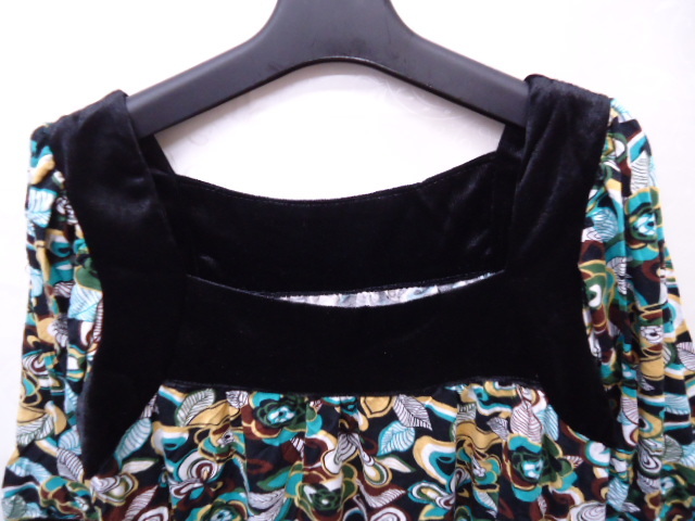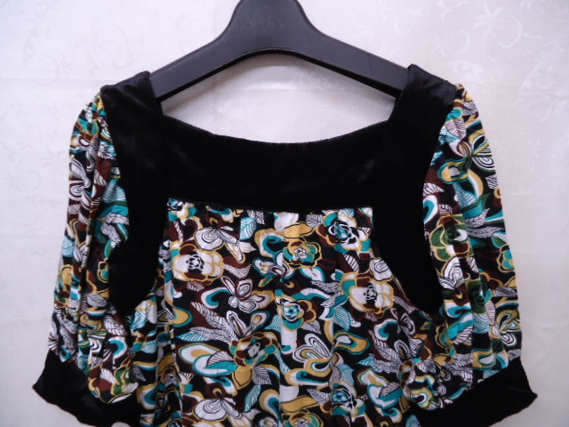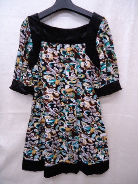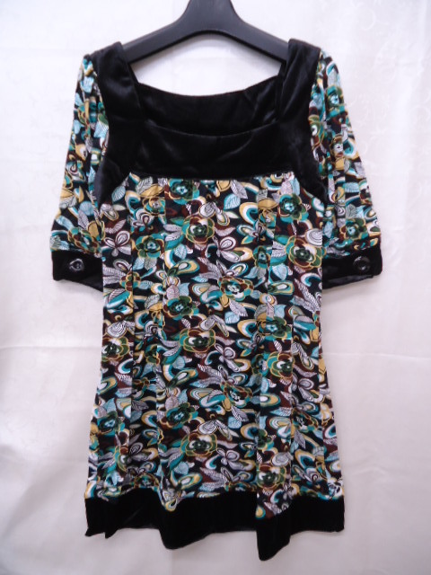 【KCM】sta-230★未使用品★【CRASH】レディース ベロア使い 半袖チュニック ブラック/ブルー系 M