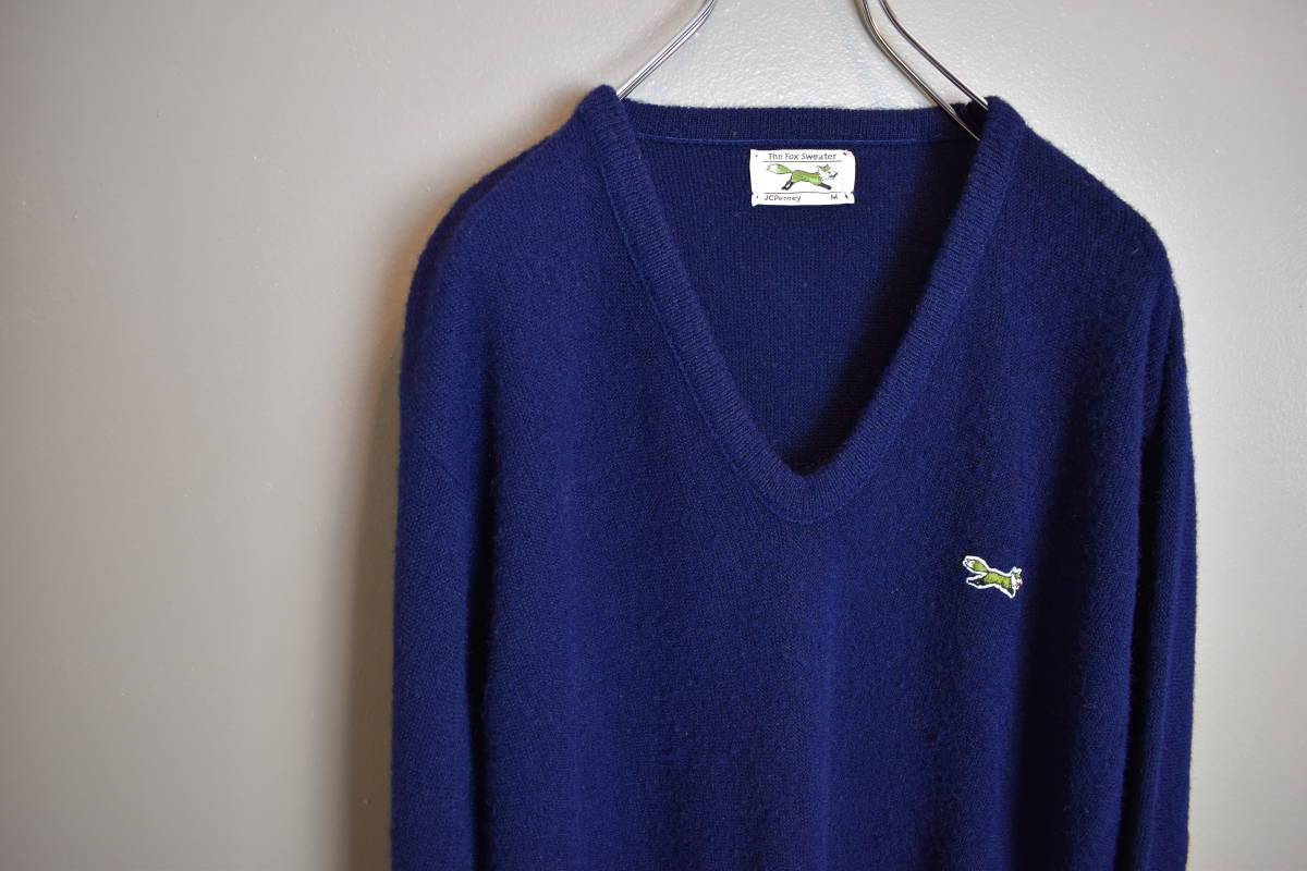 JC PENNY FOX フォックス セーター Mサイズ ビンテージ ヴィンテージ Vネック アクリル 菅田 F2A04