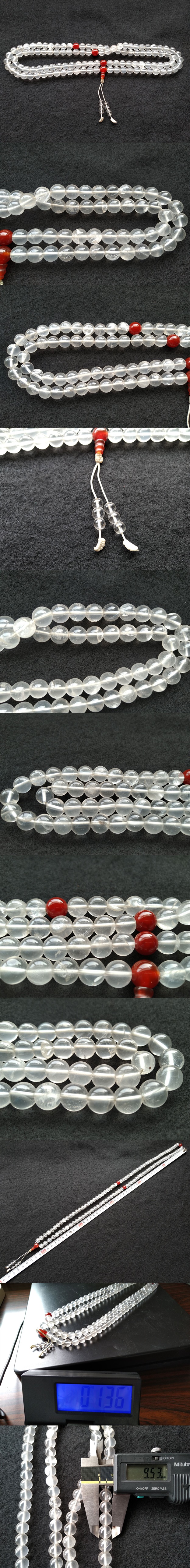 数珠 白水晶 赤メノウ 宗教 葬儀 仏具 念珠 (22_10330_6)