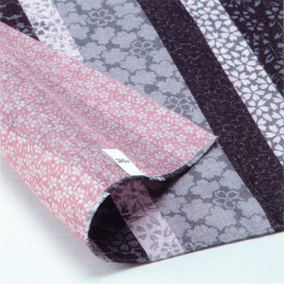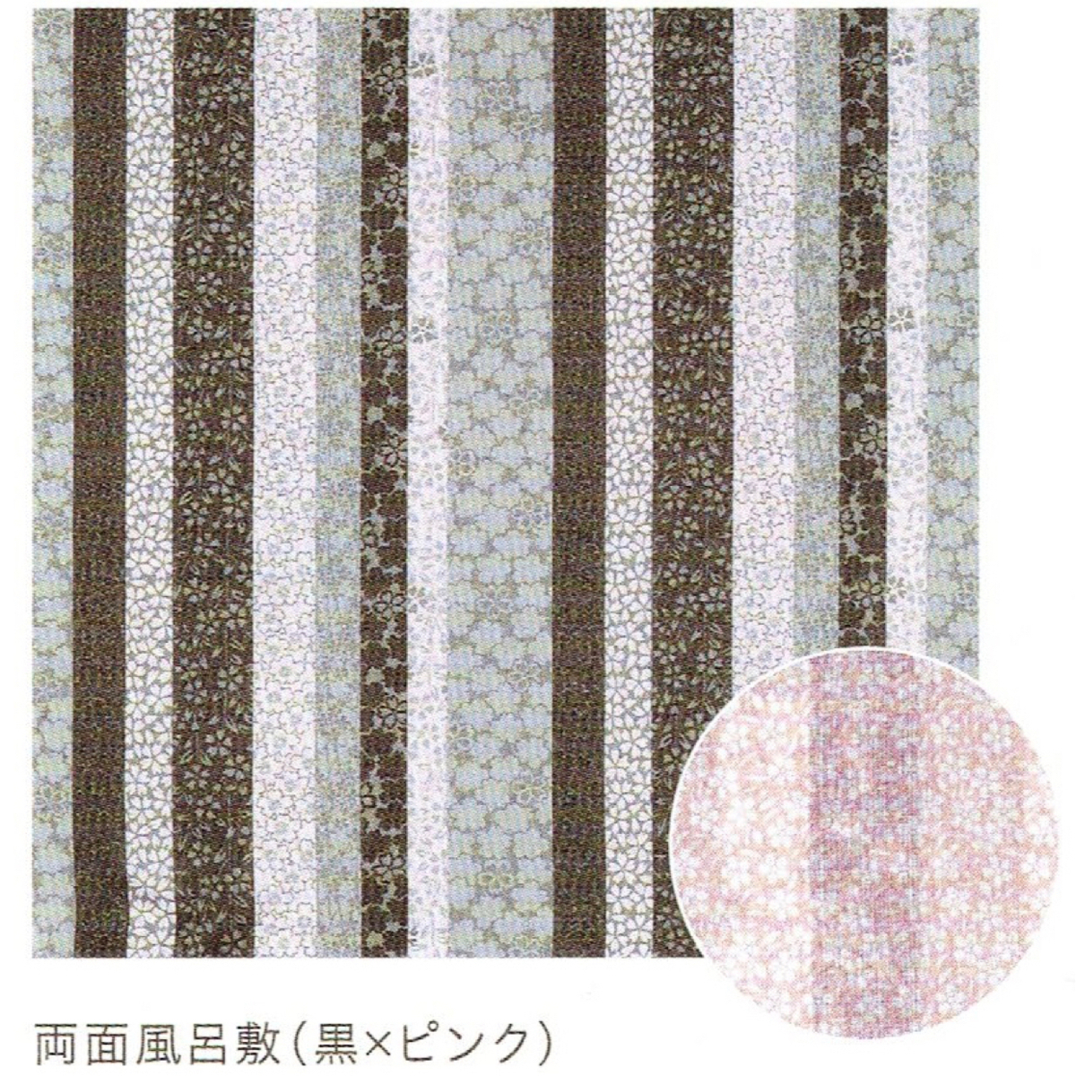 町家格子両面ふろしき「黒×ピンク」中巾(お弁当、ランチョンマット、袱紗にも) y028-034021