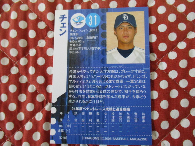 ★BBM 2005★〔D18・チェン 〕中日ドラゴンズ ベースボールカード トレカ♪