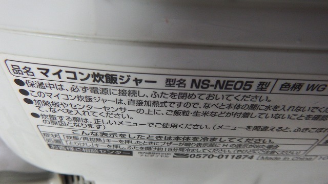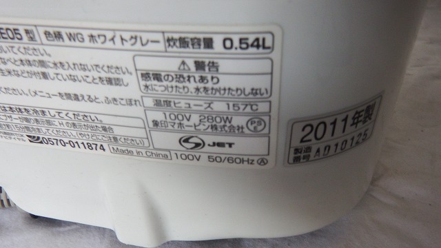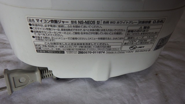 ●象印 ZOUJIRUSHI NS-NE05 マイコン炊飯ジャー 0.54L 中古品 [180718]