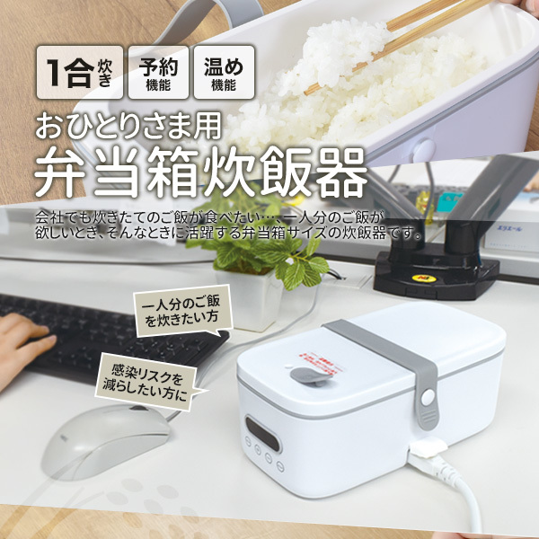 | おひとりさま用弁当箱炊飯器 ランチボックス 1人用 最短17分でご飯が炊ける 白 | |