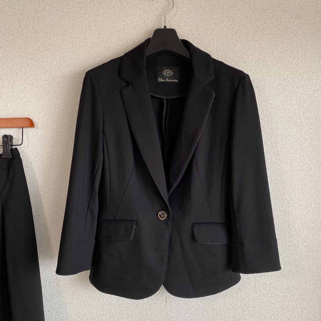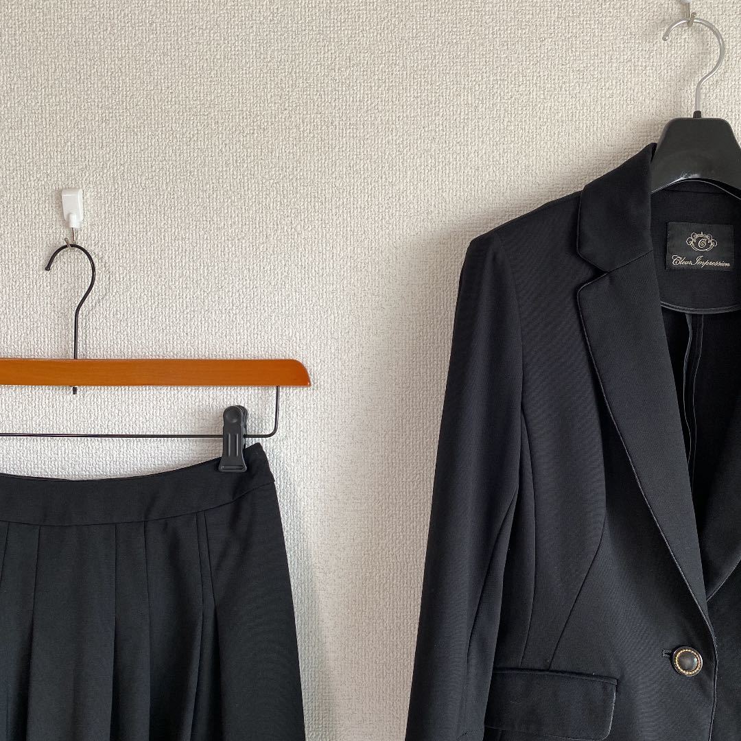 ご覧いただきありがとうございます。染み、ほつれ、汚れのない、自信を持ってお勧めできる、良いお品を提供致しております。クリアインプレッション スカートスーツ 上2下1 W60ストレッチ 黒 DMW OL ビジネス 通勤 リクルート CLEAR IMPRESSION でございます。ストレッチ素材の上質スーツです。上品で、清楚な雰囲気で着こなせます。季節感は秋冬に活用できる素材です。面接、ビジネス、学校行事にお勧めです。お色は画像でご確認下さい。実際のお色が良く出ています。黒です。背抜き立てです。ストレッチ素材です。1つボタン。袖口にボタンが1つ付いています。折り返して着ることもできるタイプです。ノーベント。ジャケット、外ポケット×2。内ポケット×0。スカート、センターバックファスナー、ポケット×0。スリットなし。脇染み、汚れ、ほつれのない、とてもきれいなスカートスーツです。