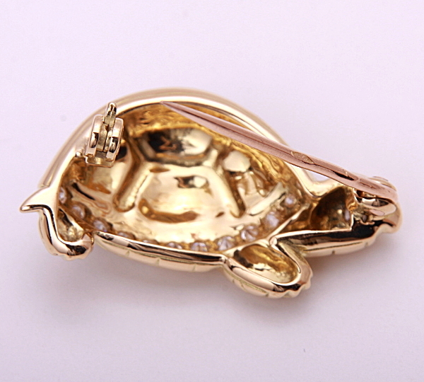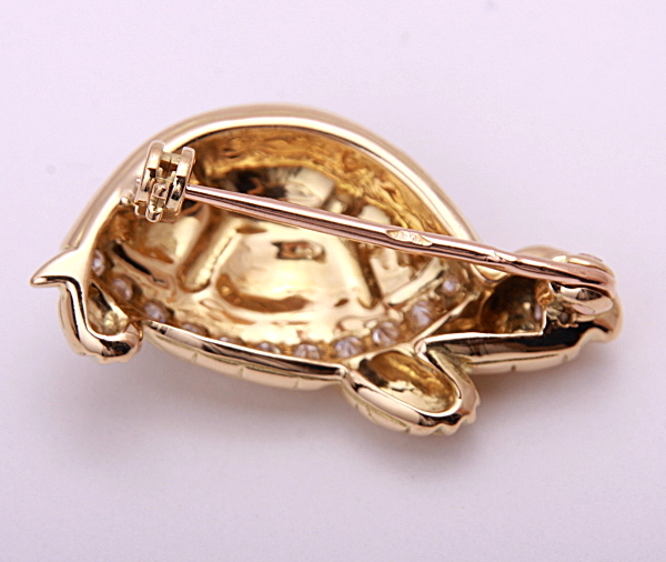 《質屋出品》750(k18)★カメモチーフの天然ダイアモンドブローチ★C-5233