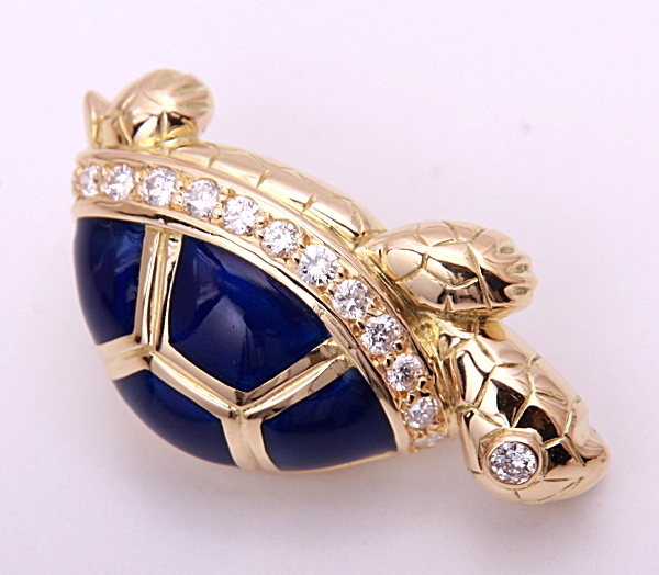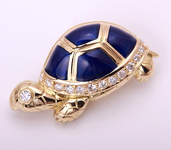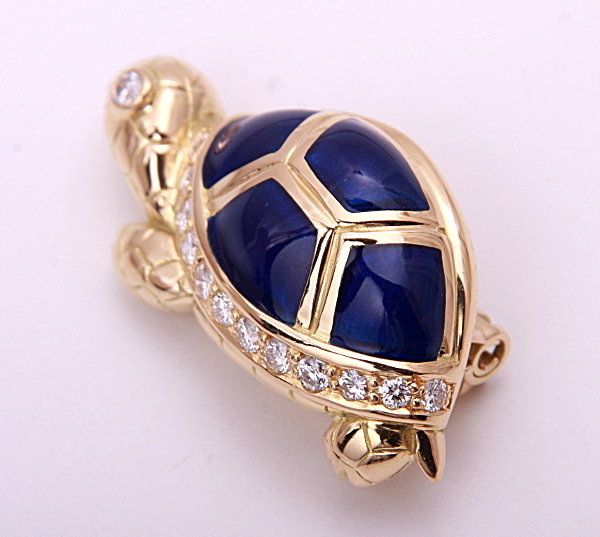 750(k18)★カメモチーフの天然ダイアモンドブローチです。