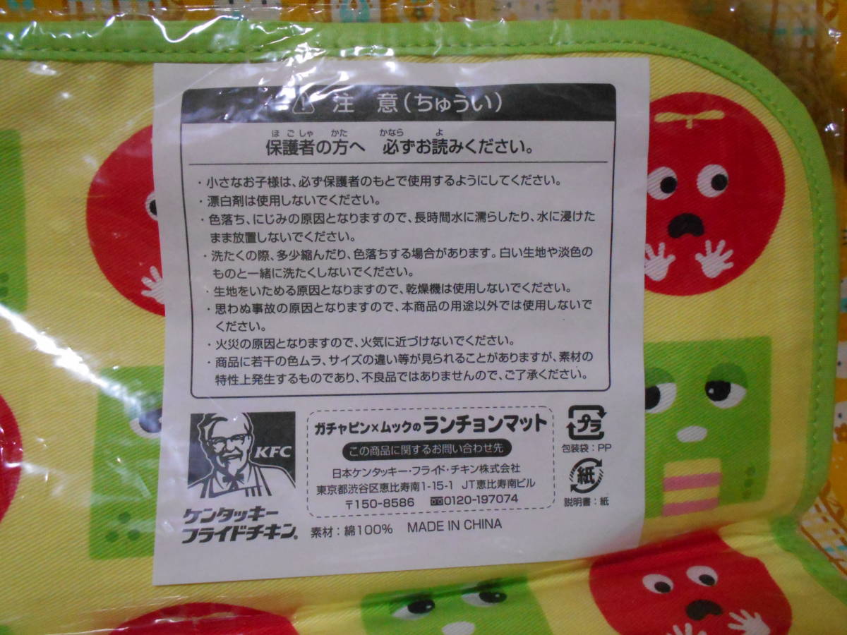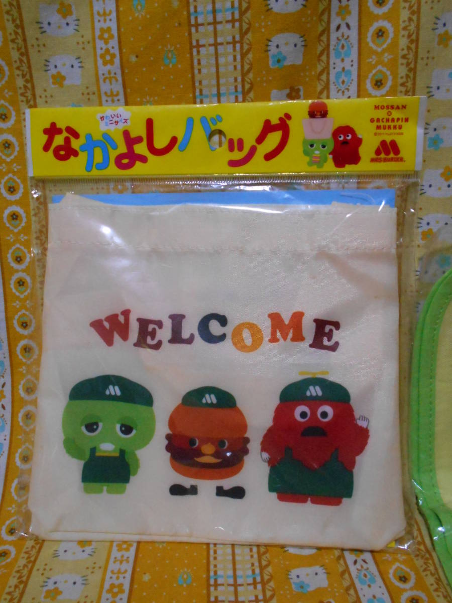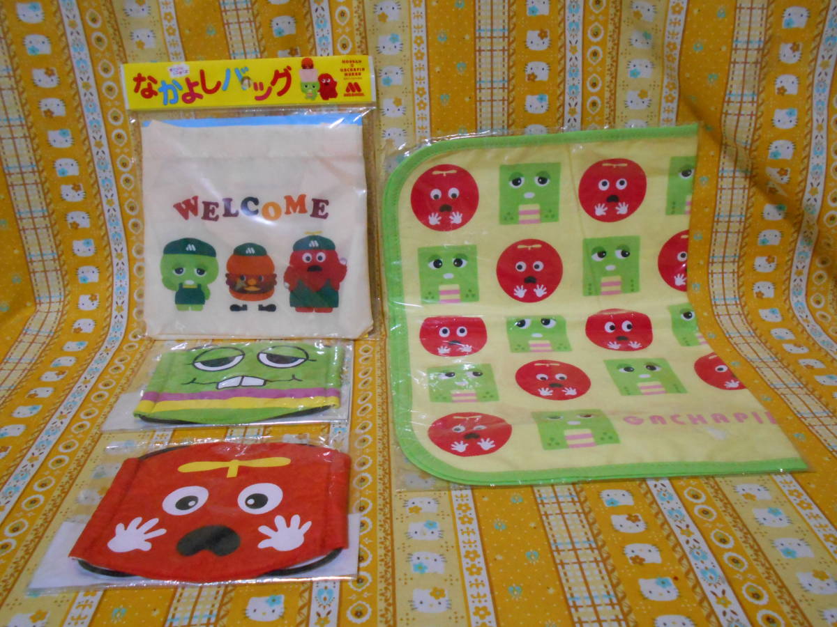 ♪ガチャピン&ムック新品モスバーガーなかよしバッグ&ケンタッキーランチョンマット&子供用マスクカバー