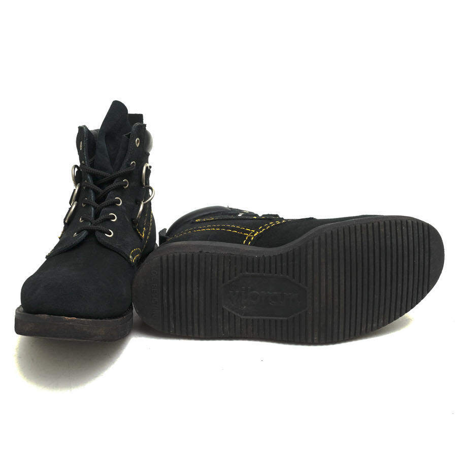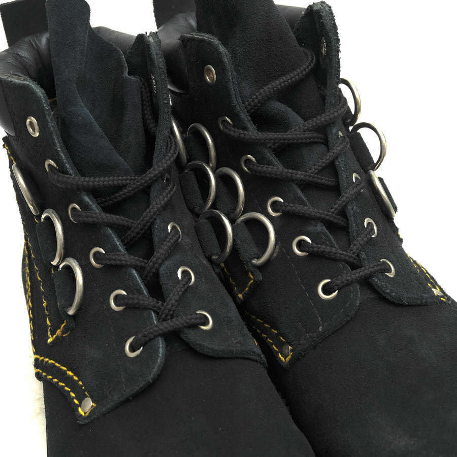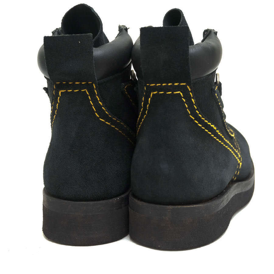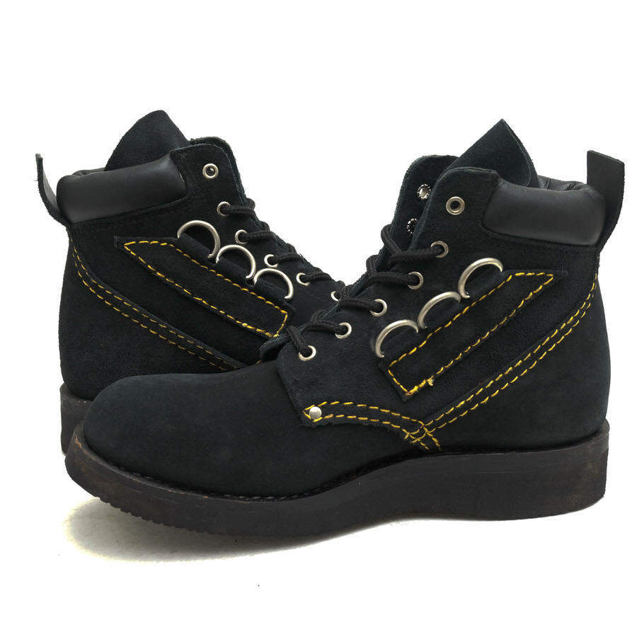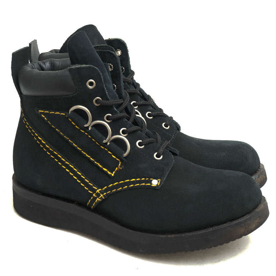 スエードレザーにイエローのシューレースが相性の良いワークブーツ。ワークブーツのディテールの中に大きめのDリングのレースホールが加わり一際存在感を発揮しています。厳しい環境にも耐えることのできるタフな仕上がりです。 |