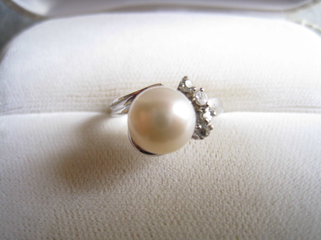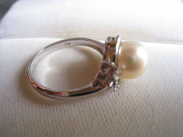 [SAMU]上質 照り!!天然淡水真珠8x6mm シルバー925指輪★美品 激安!