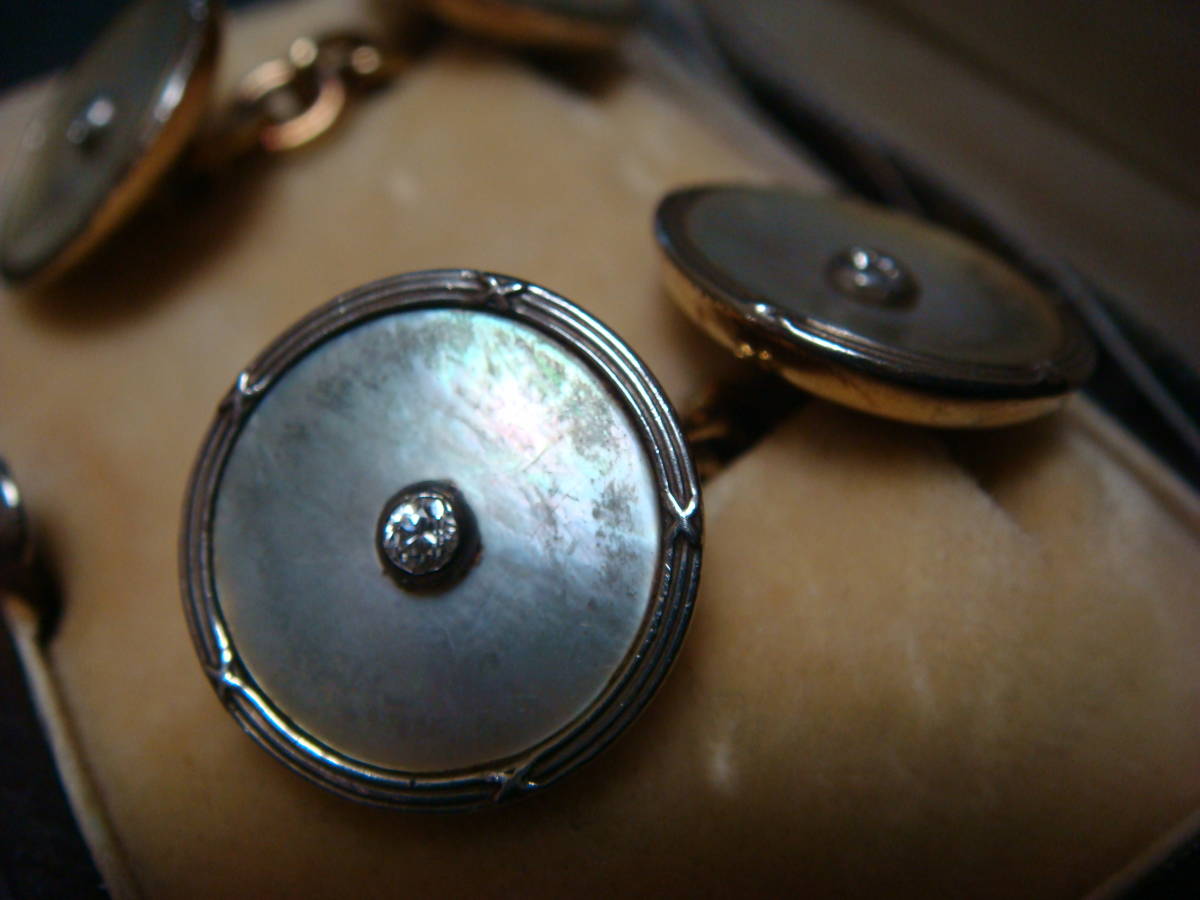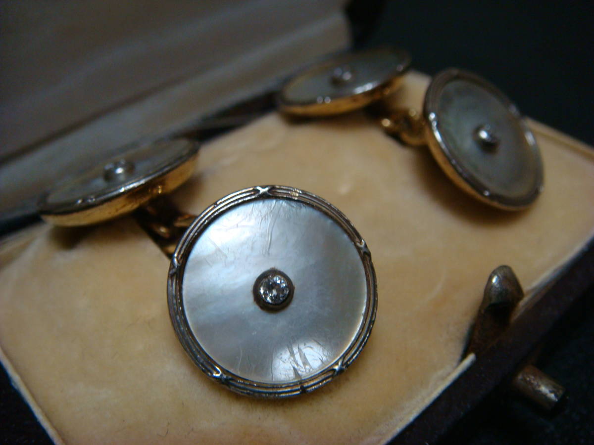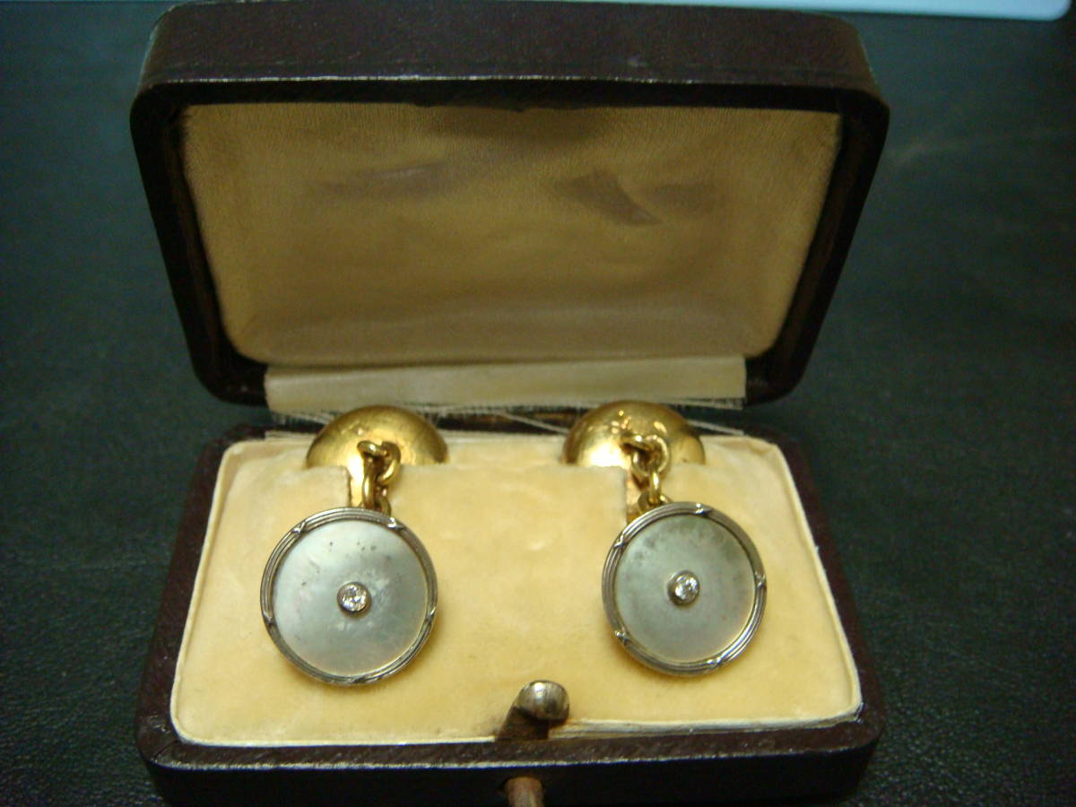 ◇ヴィンテージ シェル ダイヤモンド カフス 18金 ケース付◇