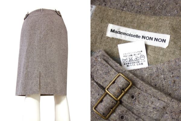 | 商品詳細 | NO-M3552 ★【ブランド】 * Mademoiselle NON NON (株)パパス 日本製 ★【特徴】 * 伸縮性に優れた上質ウールツイード素材の美形スカートです。 バックスリット入りで脚裁きもよく、通勤時・オフィスでの長時間の着用にもおすすめ。 シンプルで落ち着いたデザインが大人女性らしく、多様なシーンにお召し頂けます。 バックファスナー仕様。 ウエストバック一部にベルト穴3ヶ所×4本付き(左右に2本ずつ)で若干のウエスト調節が可能です。 新品同様綺麗なお品です。 すらり美脚魅せも期待できる美的ツイードスカート、この機会に是非いかがでしょうか♪ ・裏地○ ・伸縮性○ ・ポケット× ・季節性 秋冬向け ※状態につきましては当社基準のランク表も合わせてご参考下さい。 | ||||||||||