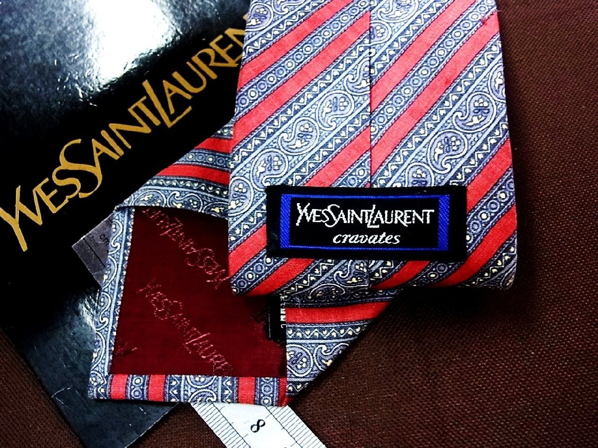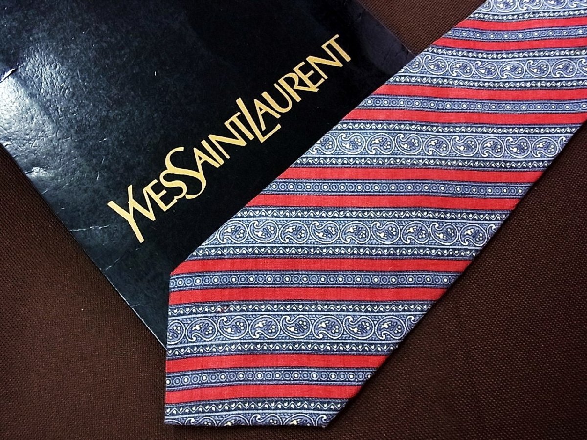 ♪24724D♪状態並品【ペイズリー ストライプ 柄】サンローラン【YSL】ネクタイ