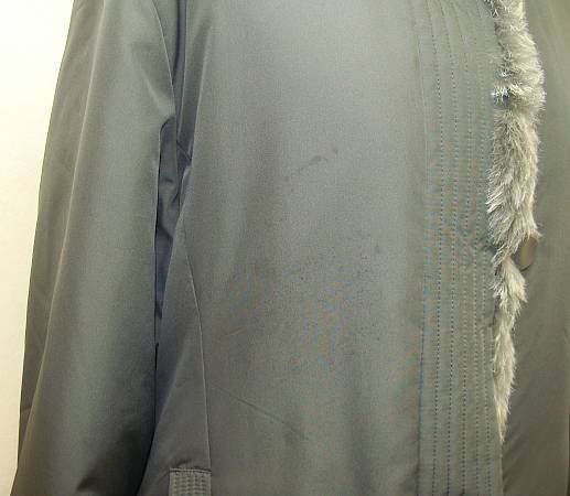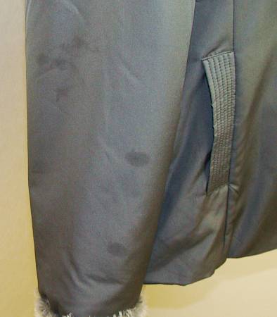 ■商品の状態:ファー側の一番下のフロントボタンが取れており本来4つあるボタンが3つしかありません。(予備のボタンはありません。)布地側には広範囲に渡って大小のシミが多数ありシミが目立つ部分もあります。