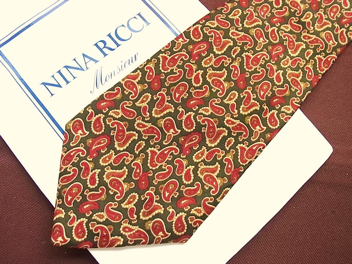 ♪20062C♪良品【ペイズリー 植物 柄】ニナリッチ【NINA RICCI】ネクタイ