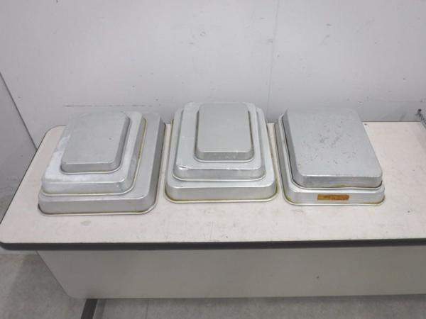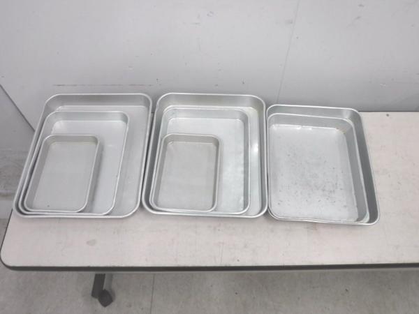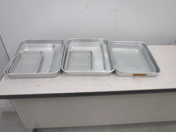 ◆アルミ製◆角バット8枚セット サイズ:380×310×40mm 2枚 345×270×35mm 1枚 310×240×35mm 3枚 255×155×28mm 2枚 出品にあたりクリーニング済みです。 多少の傷・汚れ・使用感等がありますので、予めご了承ください。 画像をよくご確認の上、ご理解頂ける方のご入札をお願いいたします。 神経質な方はご入札をご遠慮ください。 気持ちの良いお取り引きにしたいと思いますので、ご不明な点等ございましたらお気軽にご質問ください。 | |