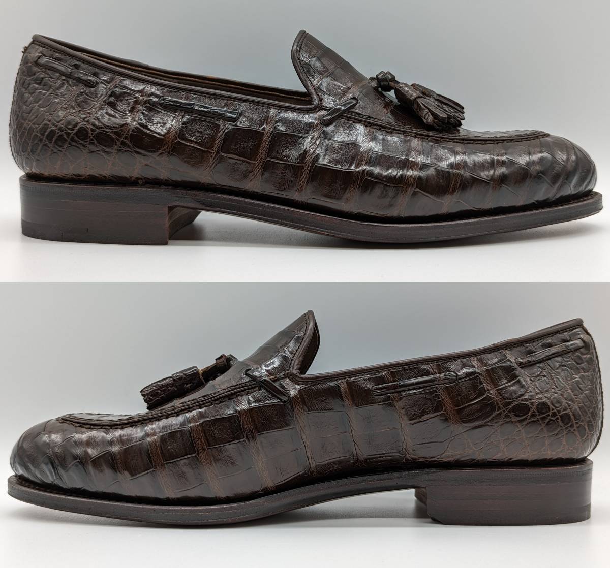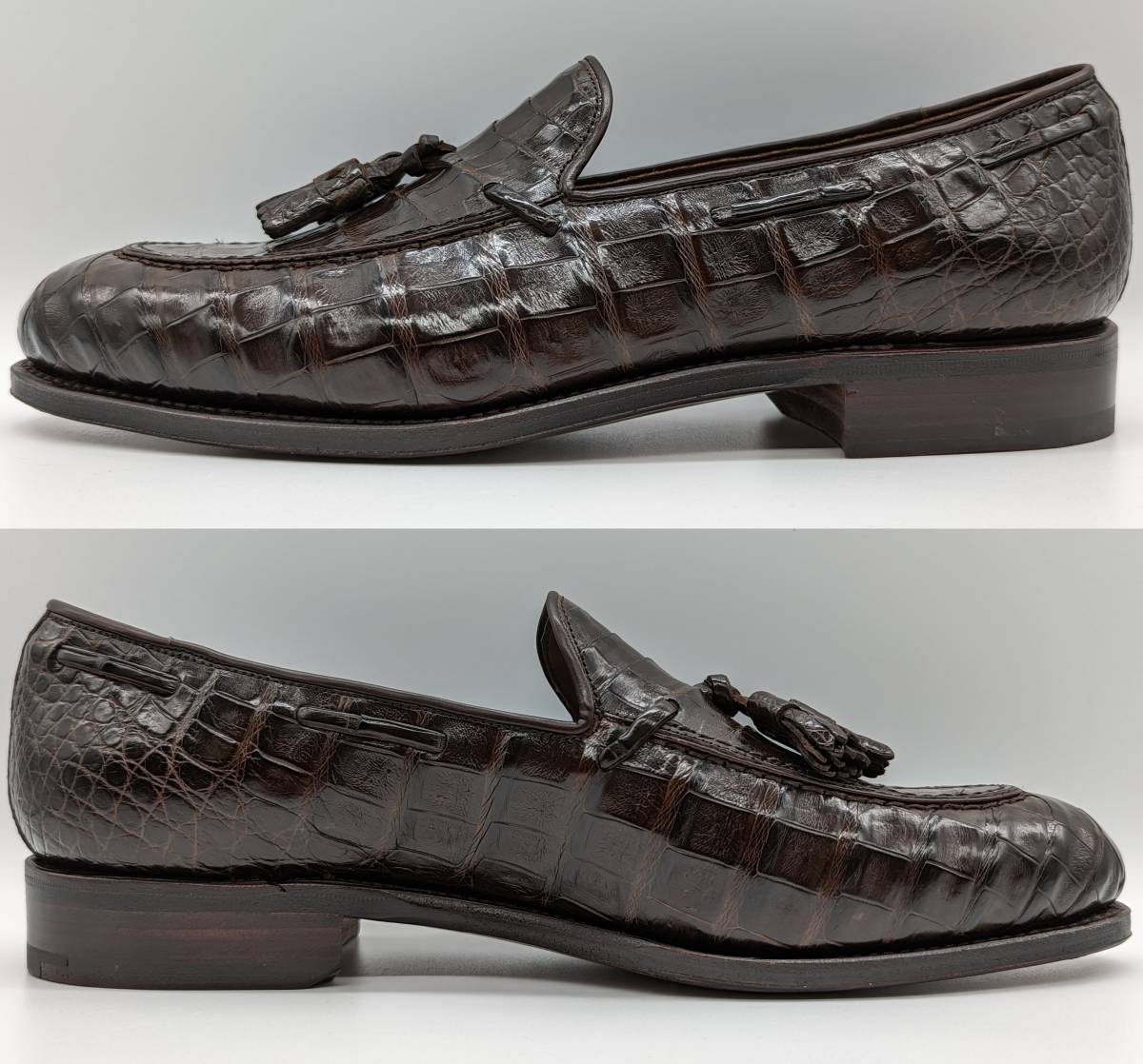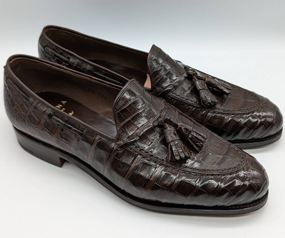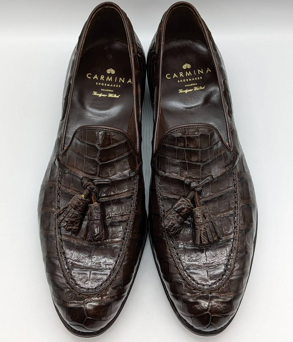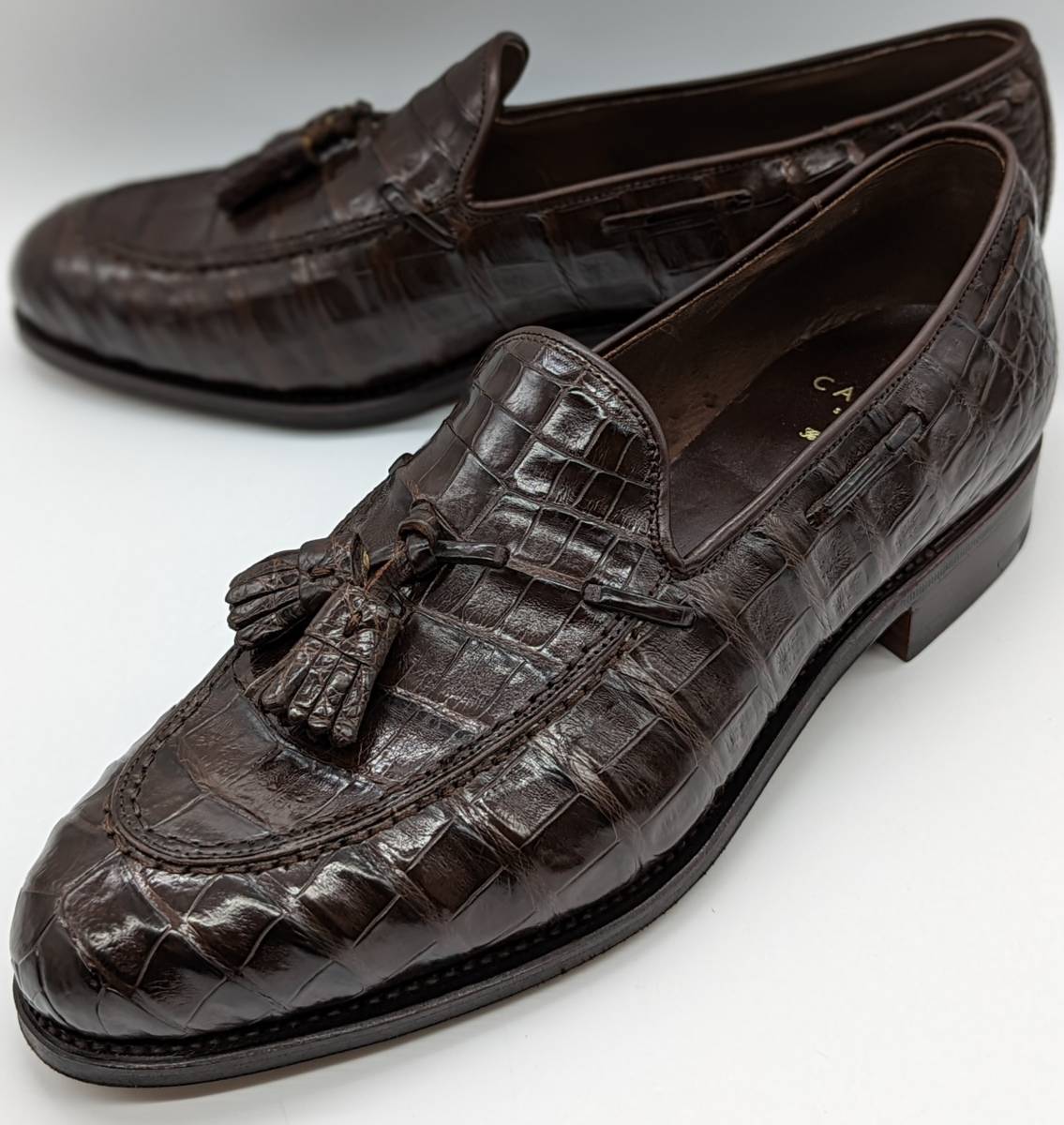 【極美】カルミナ カイマン タッセルローファー 7.5【送料無料】MTOスペシャルオーダー品 CARMINA 734 FOREST クロコダイル アリゲーター