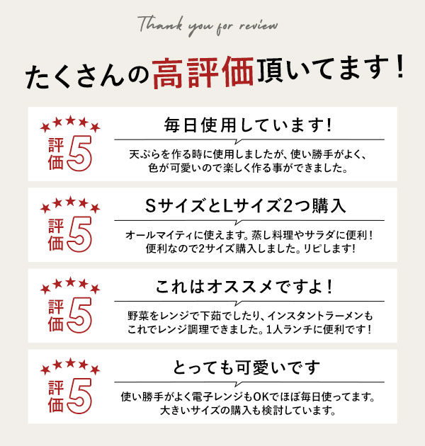 | サイズ | 3点セット時:[直径]約18cm×[高さ]約14cm ボール:[直径]約17cm×[高さ]約10.9cm コランダー:[直径]約17.5cm×[高さ]約11.3cm フタ:[直径]約18cm×[高さ]約1.1cm (※外寸のサイズです) |