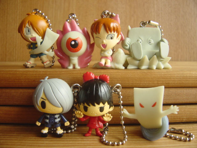 1.鬼太郎&一反もめん 2.ネコ娘&ネズミ男 3.目玉おやじ 4.一反もめん 5.ぬりかべ 6.鬼太郎(劇場版Ver.) 7.ネコ娘(劇場版Ver.) ◇蓄光素材を一部に使用、暗闇でうっすらと光るぞ! |