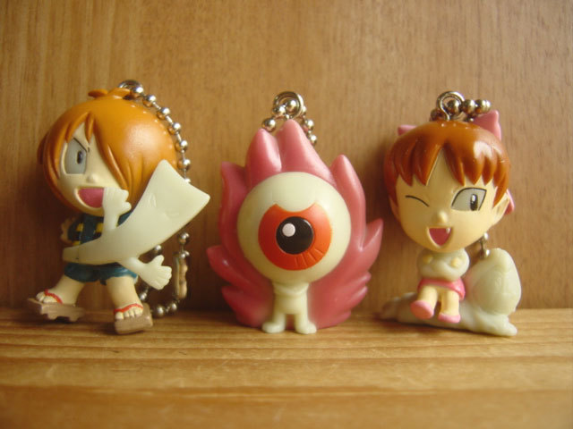 1.鬼太郎&一反もめん 2.ネコ娘&ネズミ男 3.目玉おやじ 4.一反もめん 5.ぬりかべ 6.鬼太郎(劇場版Ver.) 7.ネコ娘(劇場版Ver.) ◇蓄光素材を一部に使用、暗闇でうっすらと光るぞ! |