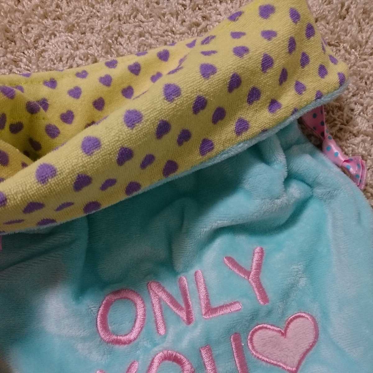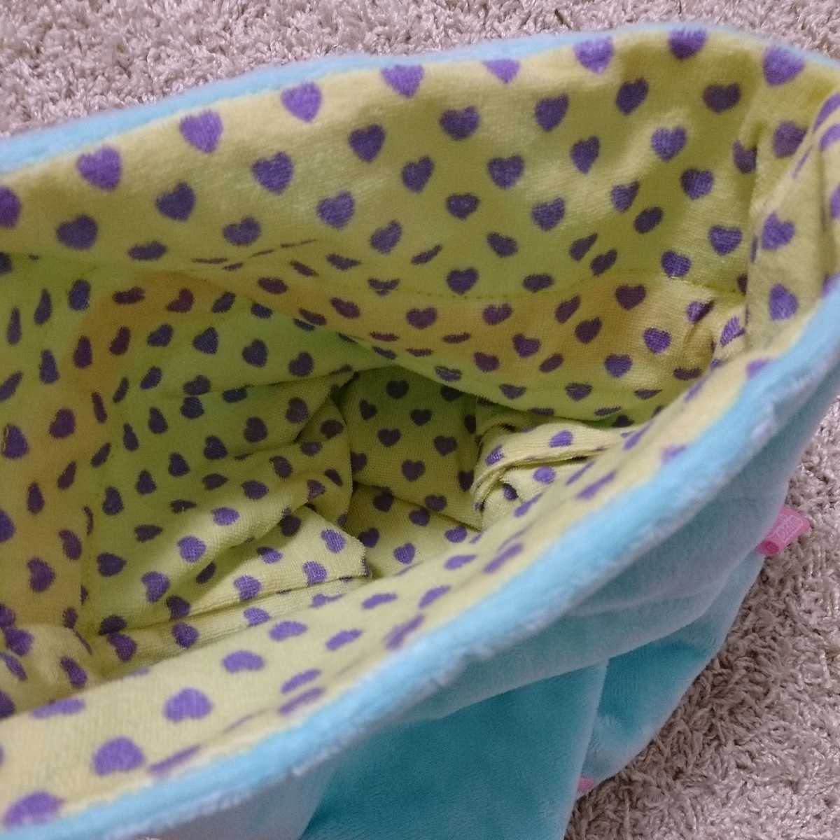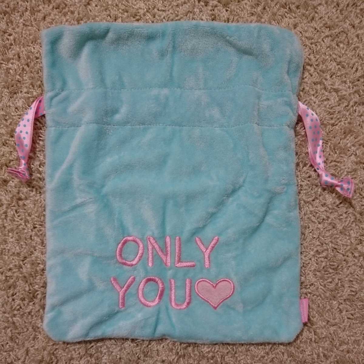 内側はタオルのようなハート柄パイル生地で、ONLY YOUの文字は刺繍になっていて、紐部分はドットサテンリボンでとても凝っていて可愛いです!