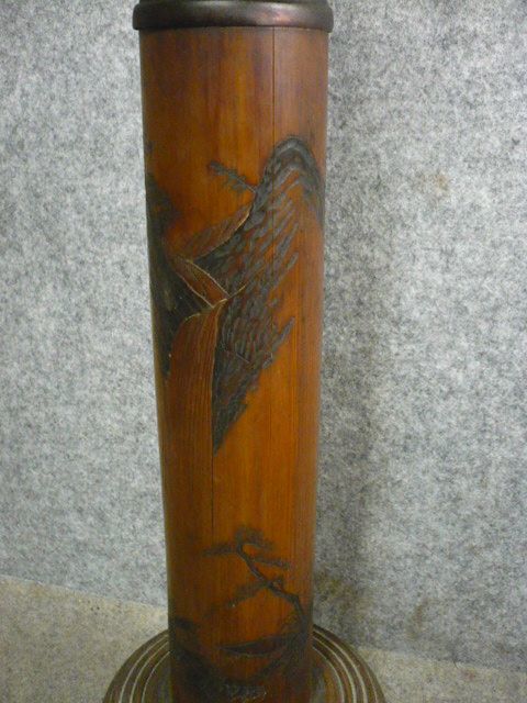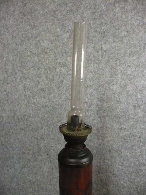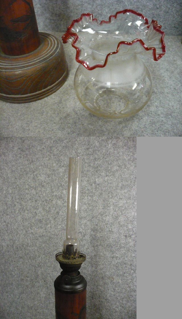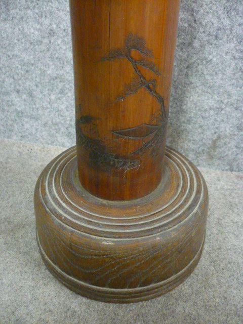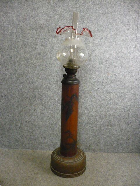 アンティーク置きランプ 赤筋ひだホヤ 竹筒台(山水風景)