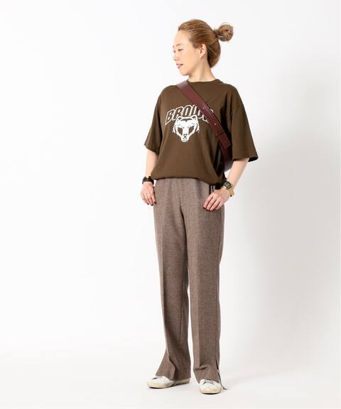 ブラウン×ホワイトのカラーはロゴアイテムも大人っぽくスタイルに馴染ませやすいです。
