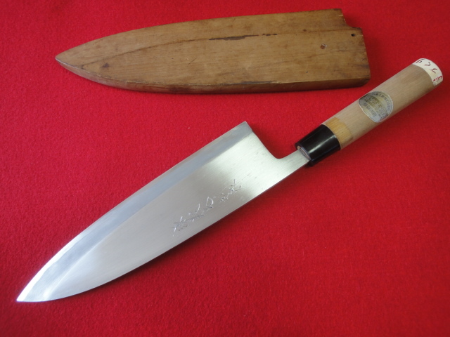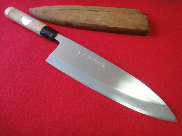 【源義光】相出刃包丁 ※別作 刃渡24.7㎝ 全長41.8㎝ 峰厚9.1㎜ ※鞘付 ※片刃 中古品 全国一律送料1100円