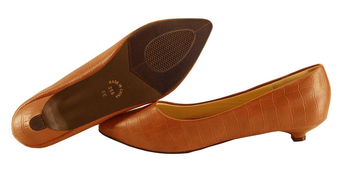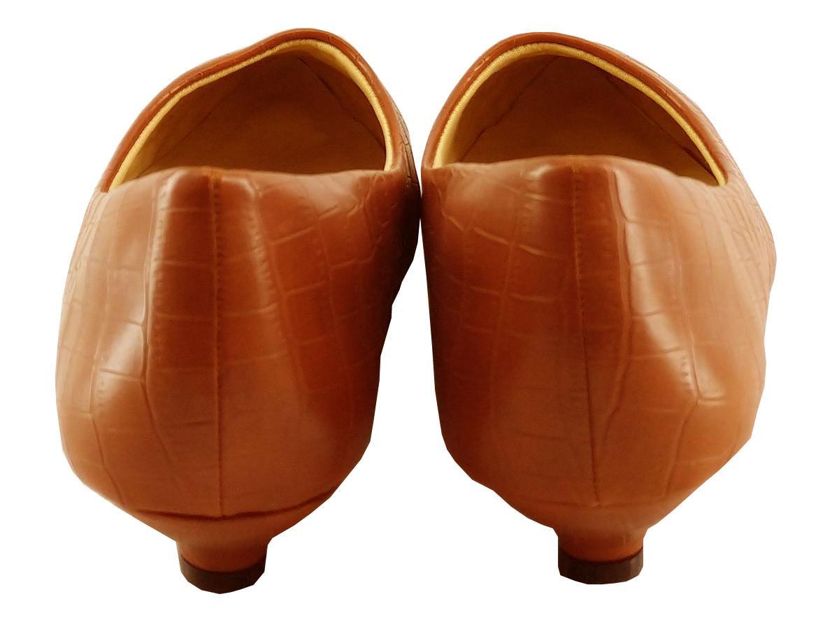 SG1522■ 新品 ポインテッドトゥ パンプス クロコダイル風 ローヒールパンプス 軽量 片足 200g 25.5cm キャメル