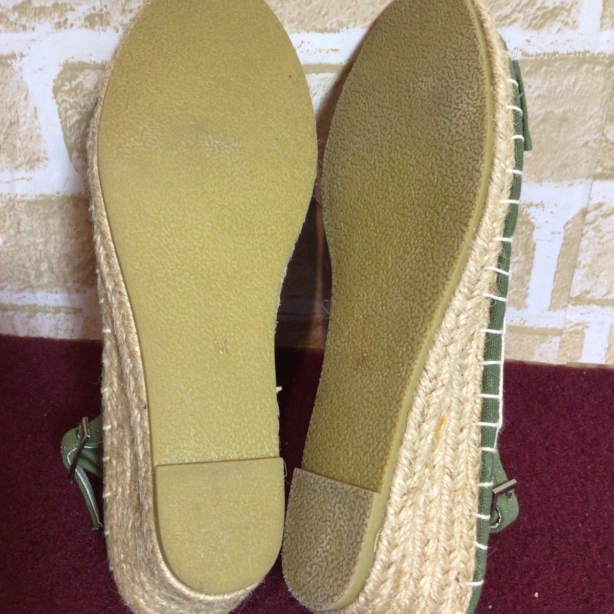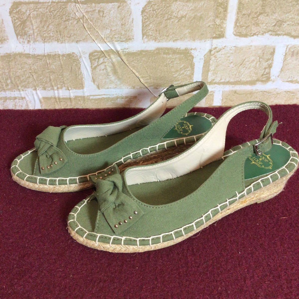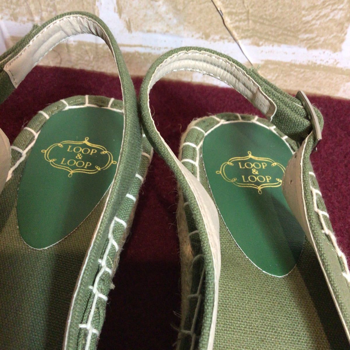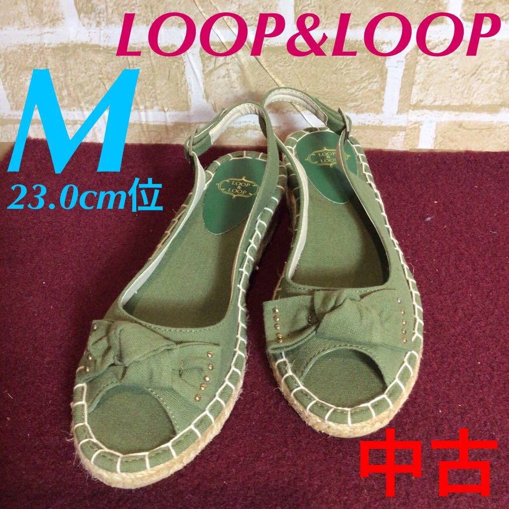 【売り切り!送料無料!】A-195 LOOP&LOOP!M!23.0cm!サンダル!ウェッジソール!リボン!カーキー系!レディースサンダル!中古!