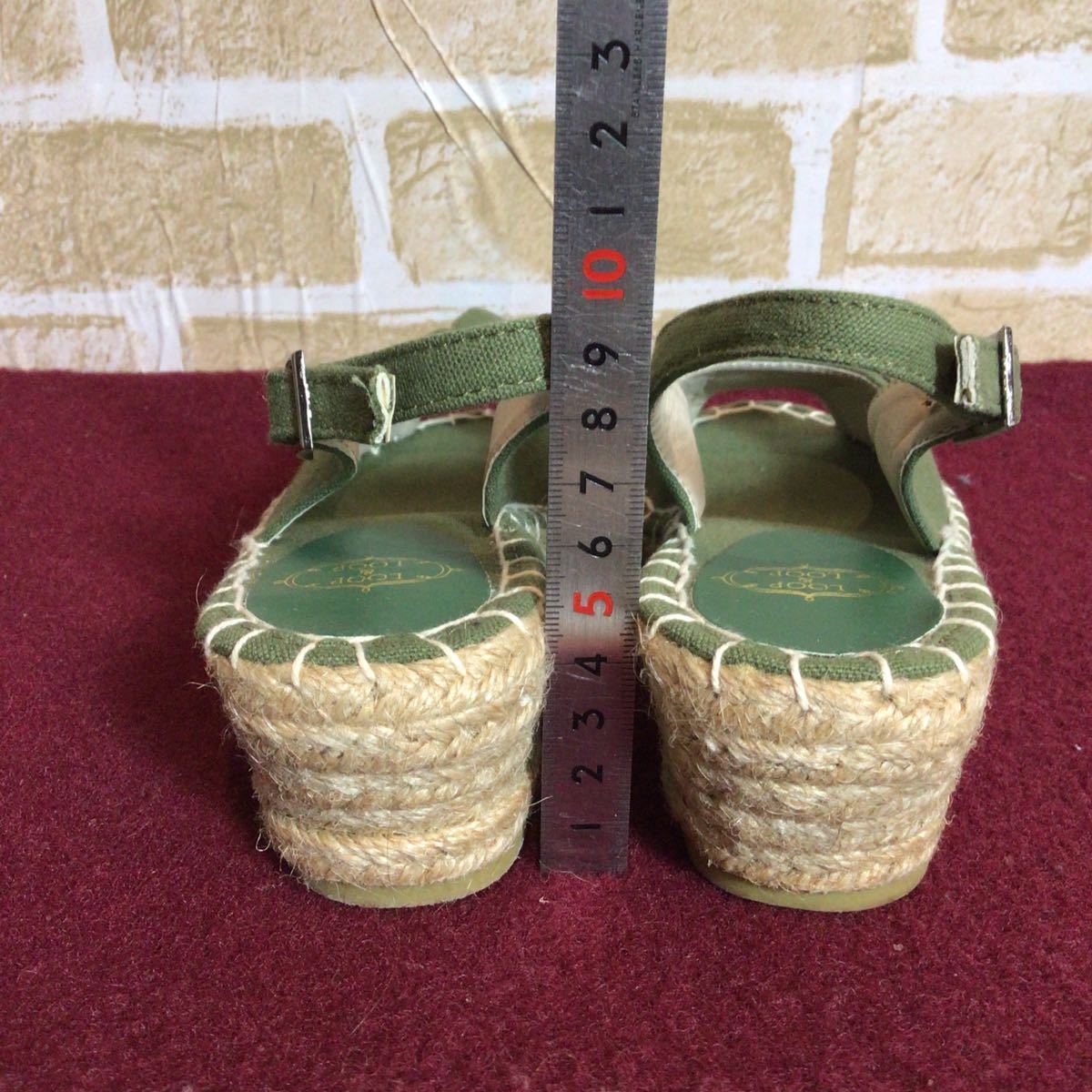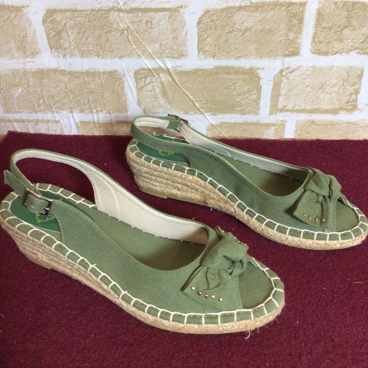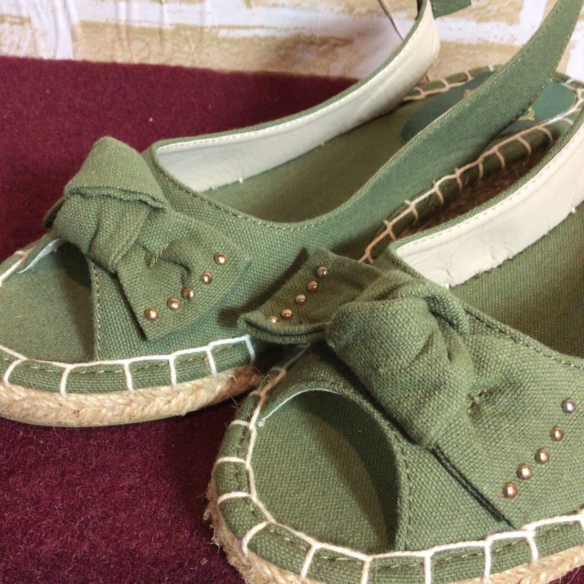 【売り切り!送料無料!】A-195 LOOP&LOOP!M!23.0cm!サンダル!ウェッジソール!リボン!カーキー系!レディースサンダル!中古!