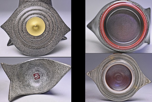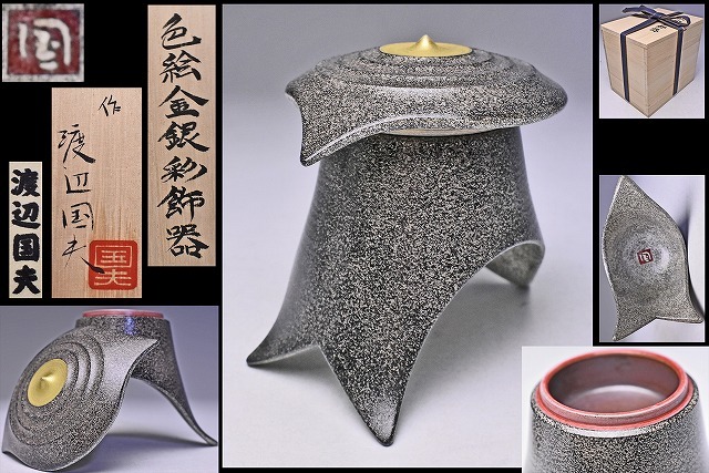 渡辺国夫 ★ 色絵 金銀彩 飾器 ★ 共箱 栞 ★ オブジェの様な楽しく洒落た造形の逸品 ★