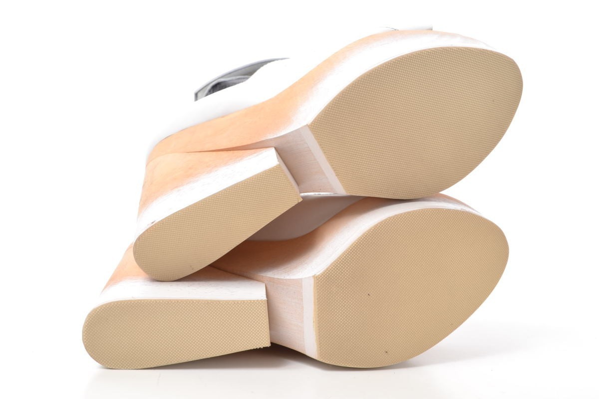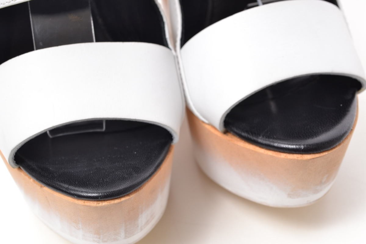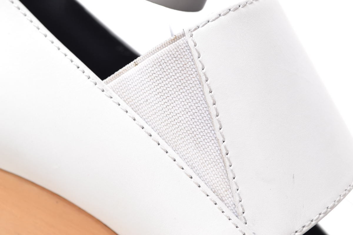 | コメント | ストラップ留め部分はマジックテープ仕様。上質なカーフレザーを使用した、ホワイトカラーにウッドソールの組み合わせが爽やかな印象を演出するサンダルです。 |