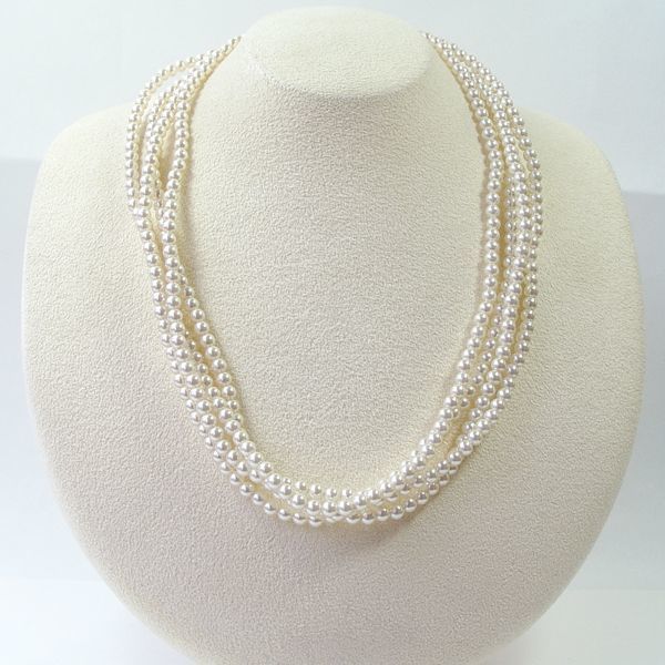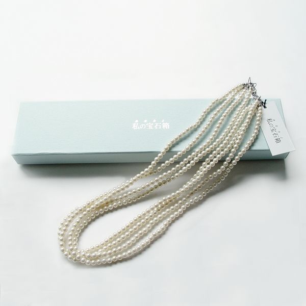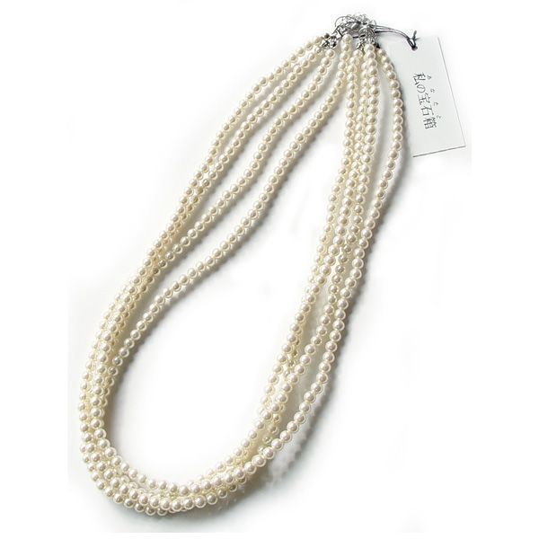 清楚な4ミリパールの4連ネックレスはボリュームいっぱいで華やか!