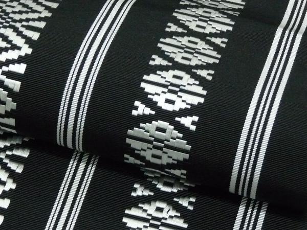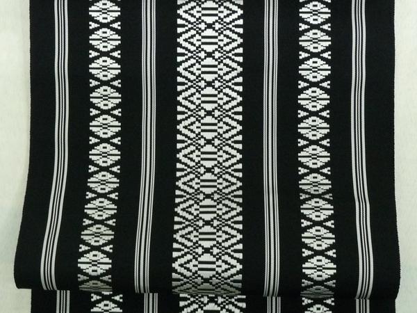 | 商品名 まゆの四季/新品/博多帯/正絹/献上/独古/華皿/本博多織八寸帯/博多献上黒地白 | ||