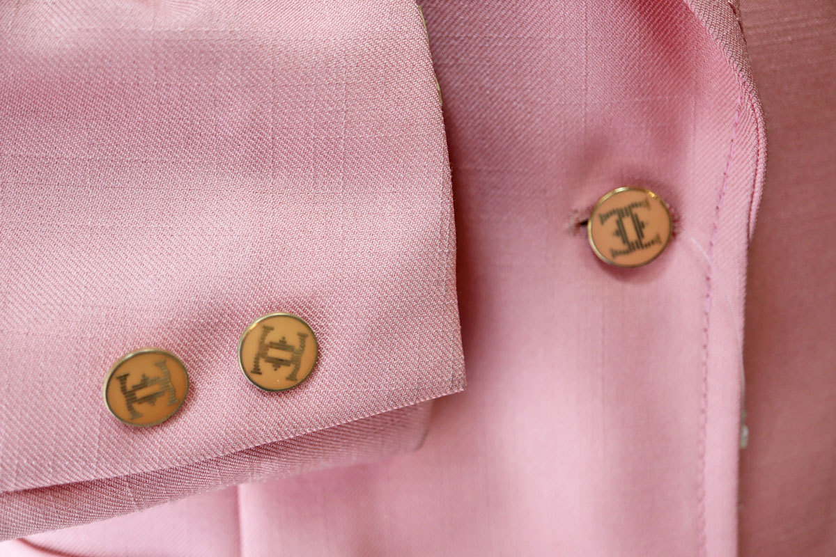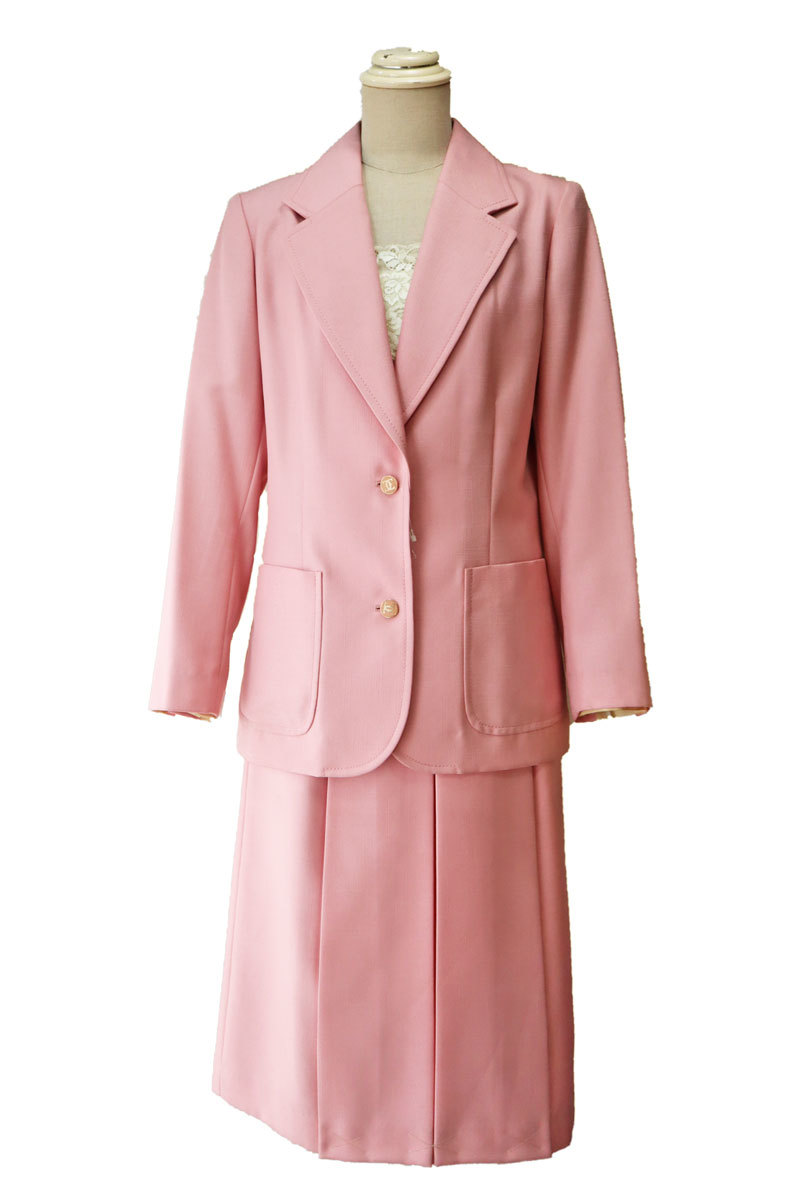 1960年代70年代・・昭和の時代のスカートスーツ。 スカート‥ウエスト62(ゴムなし) ヒップ92 ベルト下丈66 ◆生地:ストレッチ度 あり5-4-3-2-●なし ◆厚さ 厚い5-4-●-2-1薄い ◆メーカー希望小売価格(税抜き):ジャケットに正規のタグはついていません。 おそらく、上下合わせて¥20000ほどだと思います。 ◆デッドストックです。 | |||