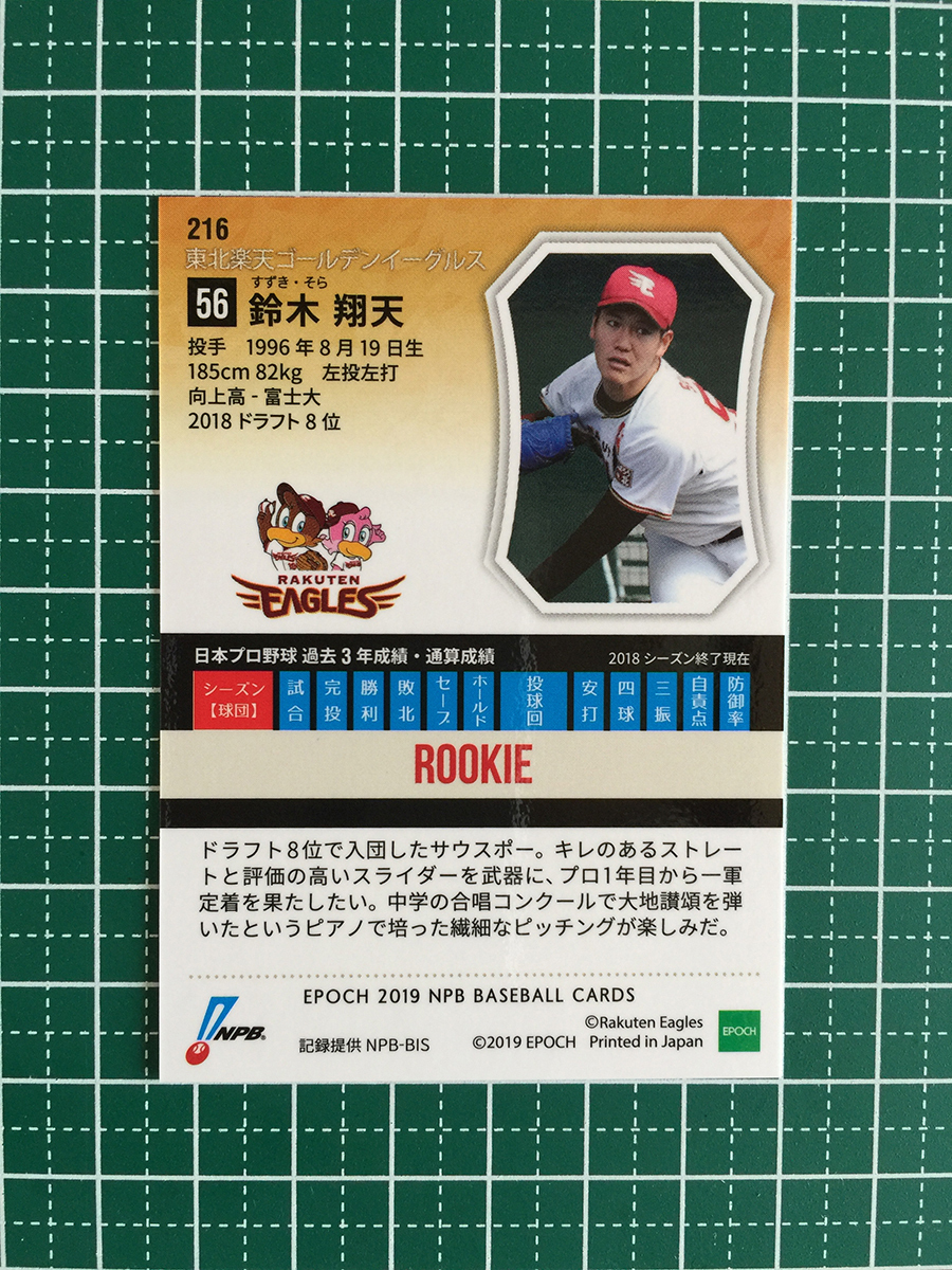 ★EPOCH 2019 NPB プロ野球カード #216 鈴木翔天[東北楽天ゴールデンイーグルス]レギュラーカード ルーキー RC エポック 19★