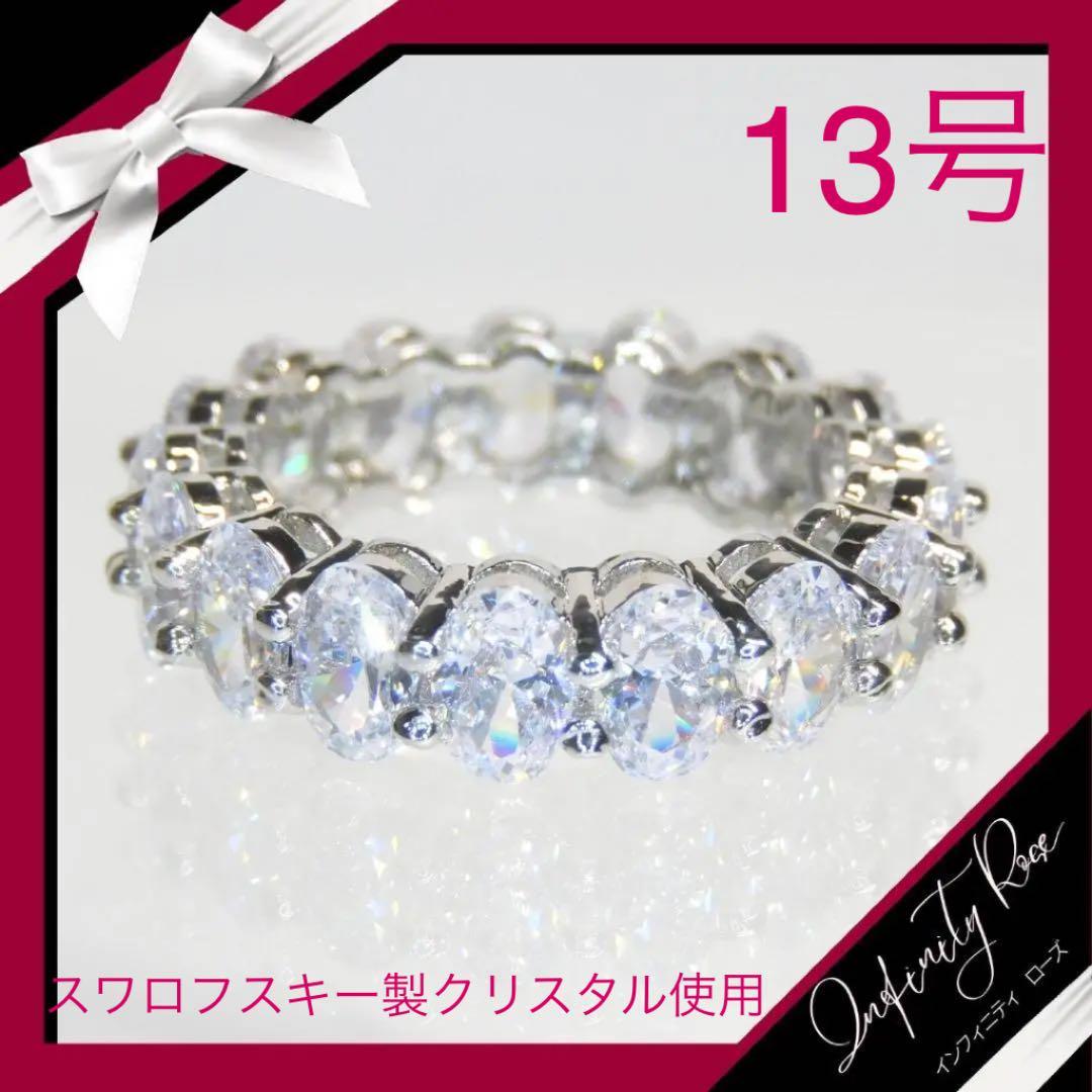 (1149)13号 シルバー×クリア プックリ丸い クリスタルリング 爪留め指輪 スワロフスキー製クリスタル使用