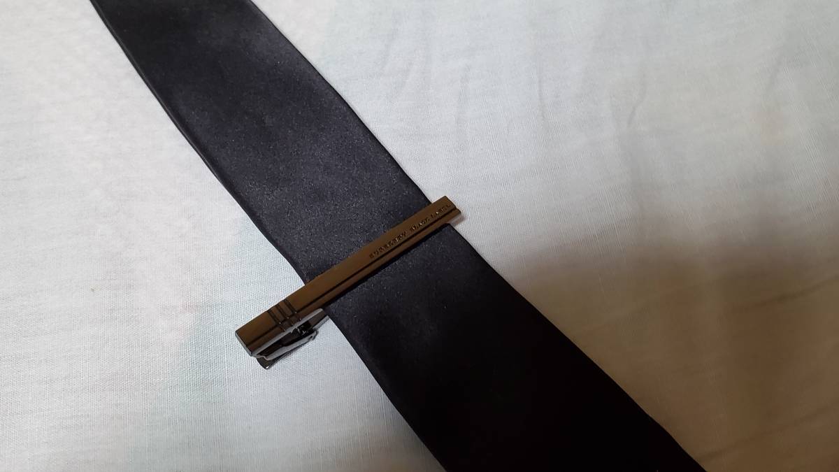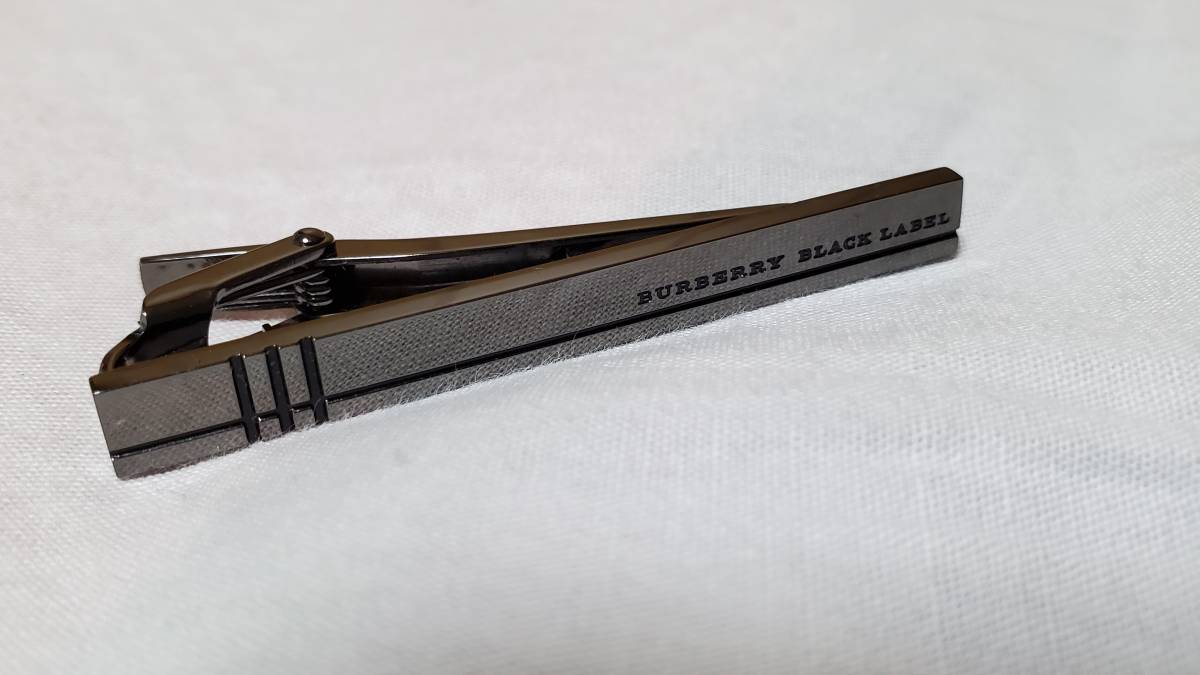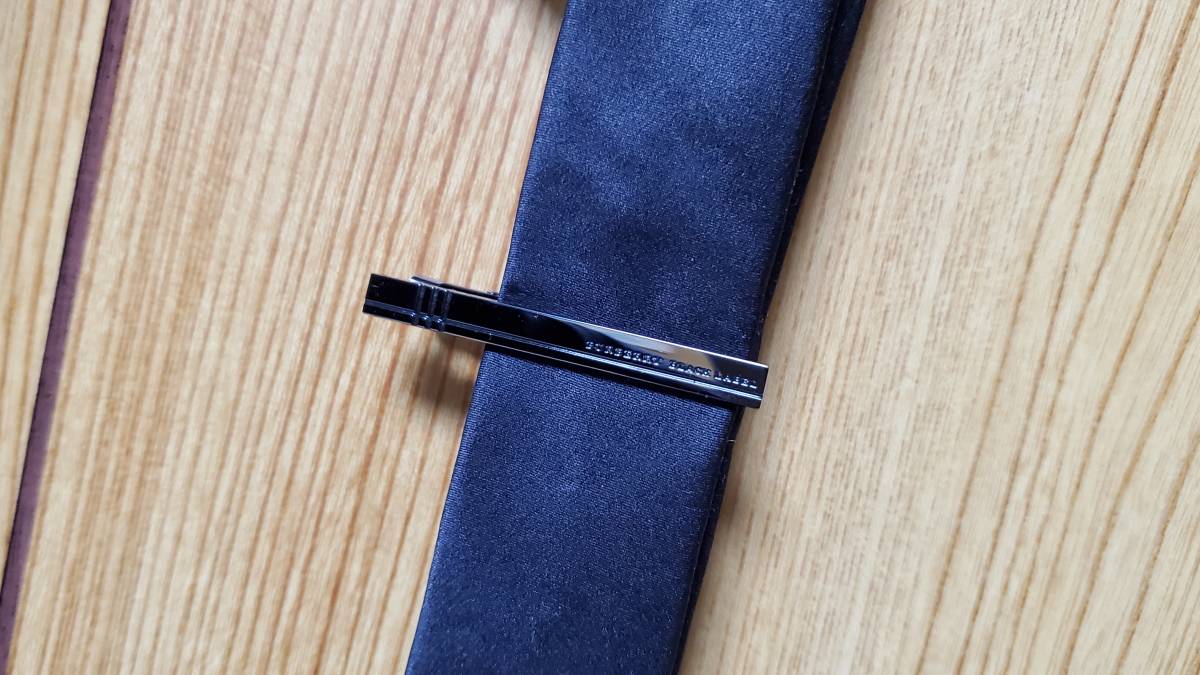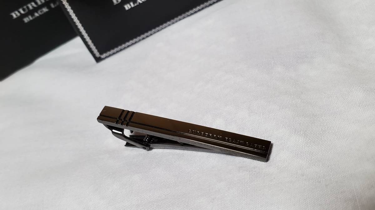 正規良 BURBERRY BLACK LABEL アイコンロゴ メタルブラックタイピン ネクタイピン ラインアート クリップタイバー グラマラスカラー 付属有