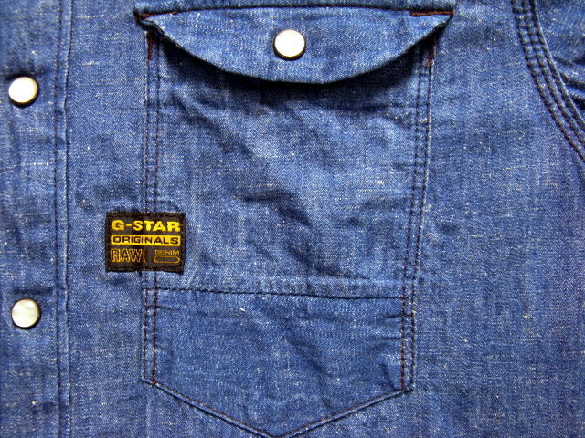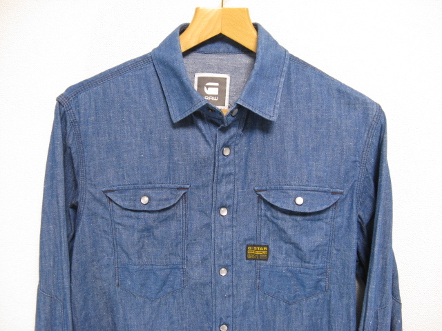 G-STAR RAW ジースターロウ デニム ランチ シャツ Mサイズ ウエスタンヨーク 3本ステッチ マチ付き