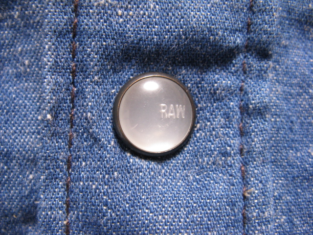 G-STAR RAW のランチ シャツです。ネップの入ったデニム地でラギッドな雰囲気が最高です。ウエスタンヨーク、ビンテージデザインの縦長の胸ポケット、主要部分3本ステッチ、裾は両サイドマチ付きなどディティールも凝った作りです。