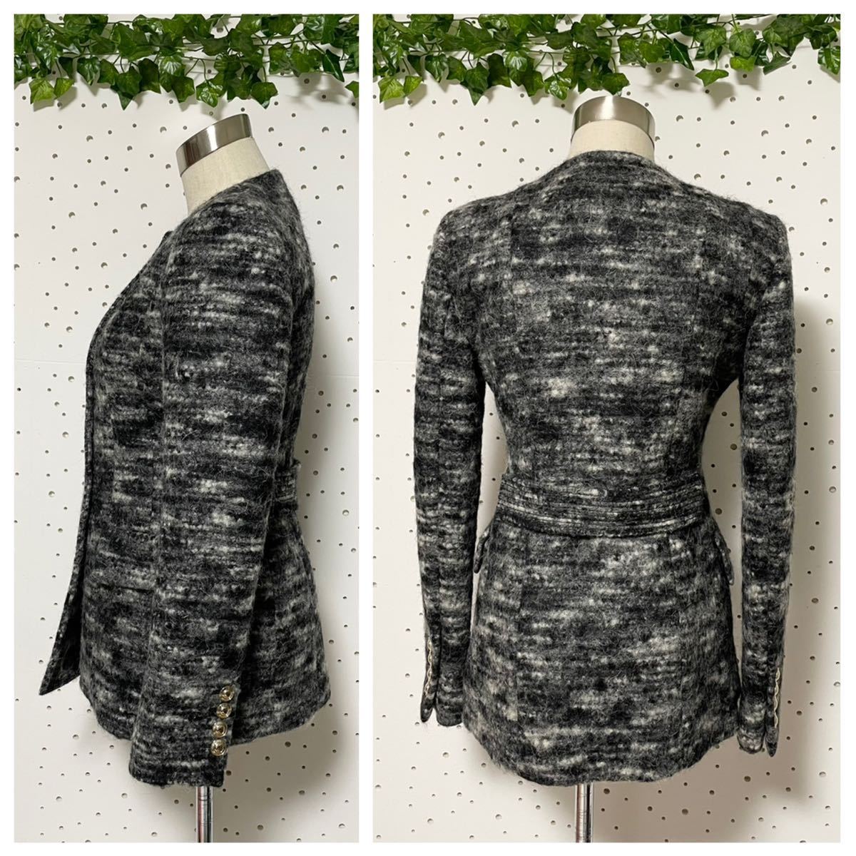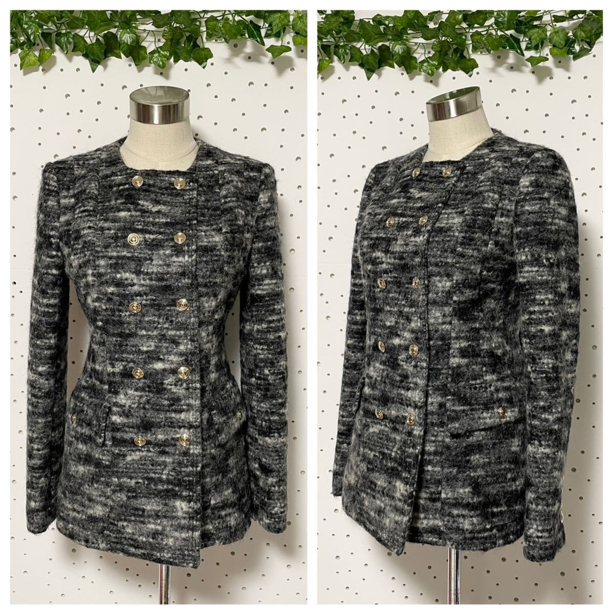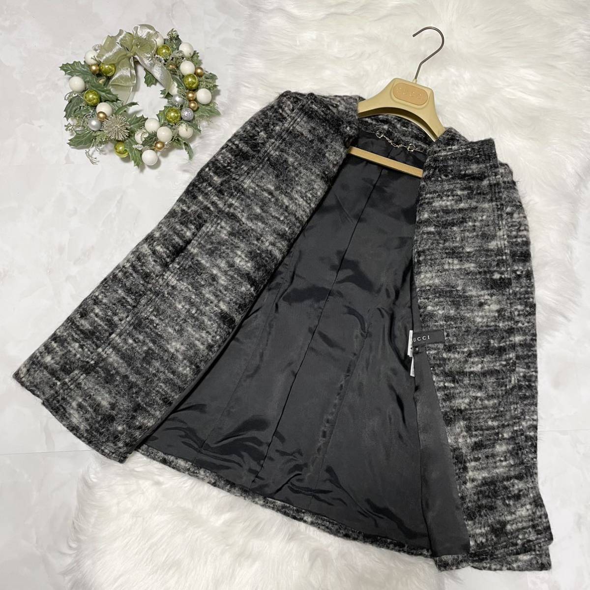 本物 グッチ ベルト付 霜降り ブリザード デザイン ダブルボタン ジャケット コート 肩パッド付 38 グレー系 GUCCI | |||