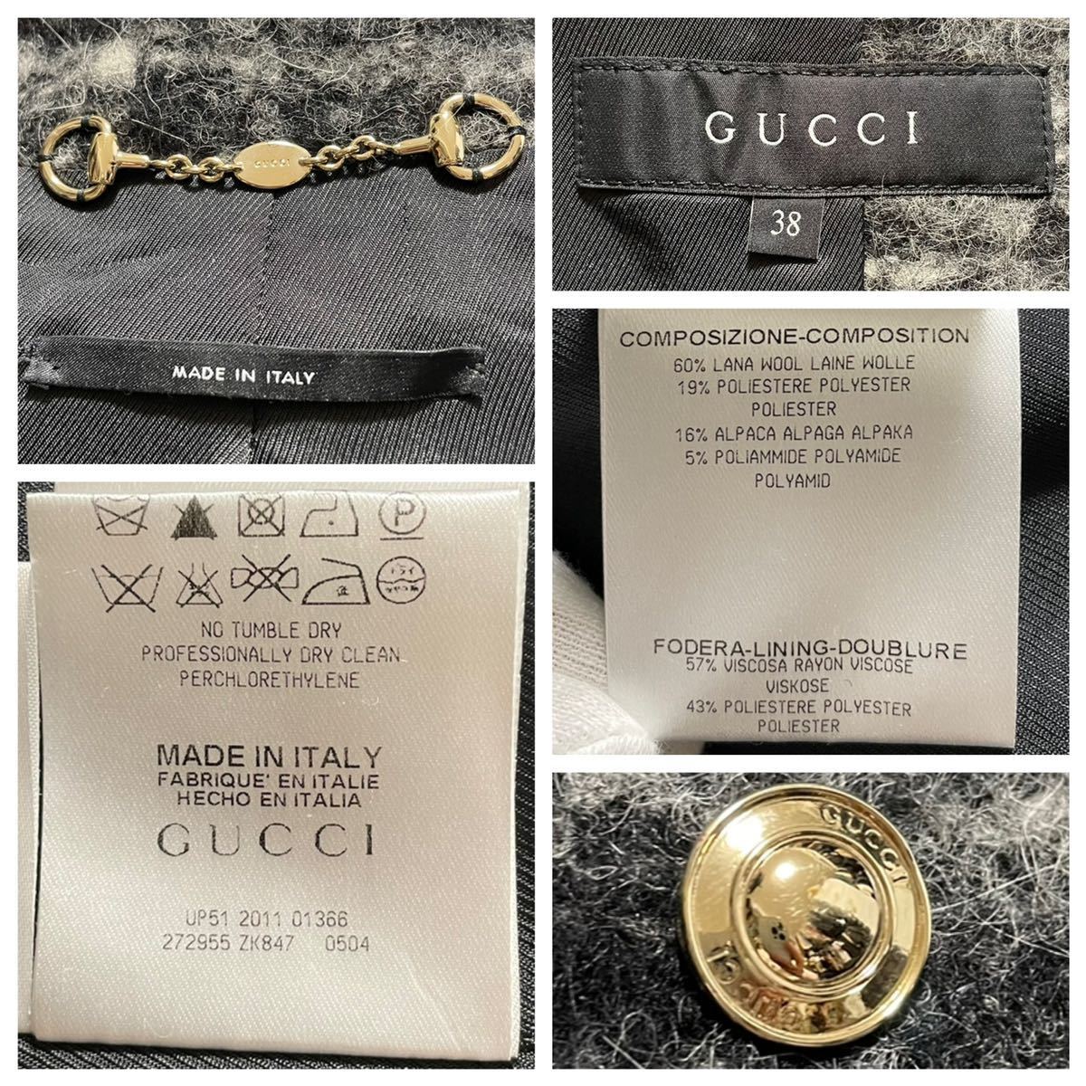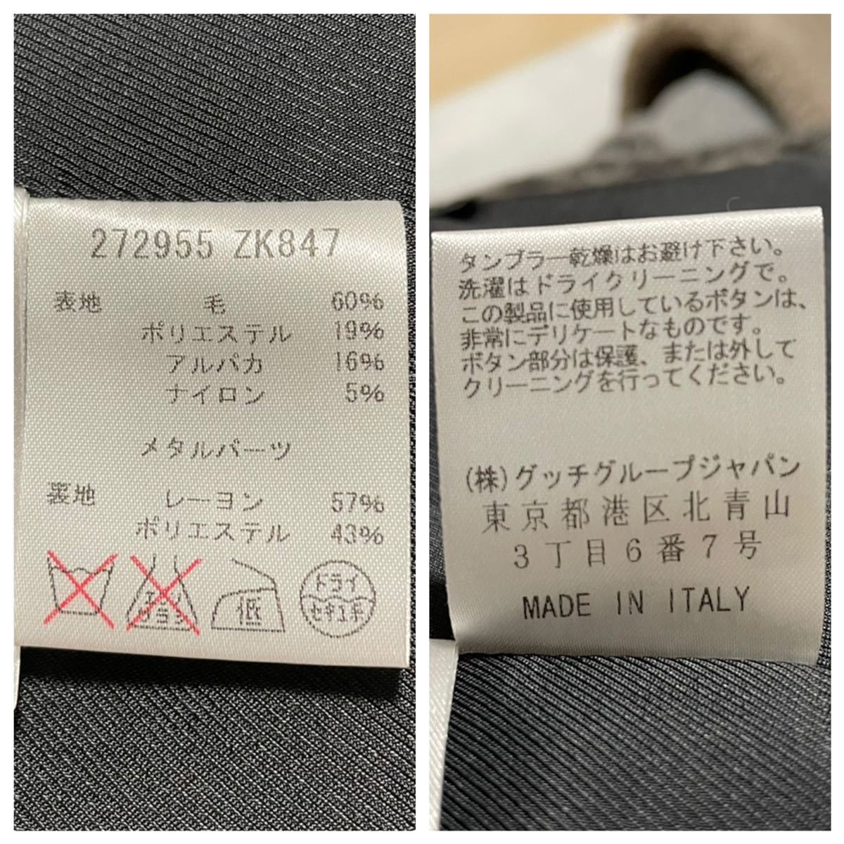 本物 グッチ ベルト付 霜降り ブリザード デザイン ダブルボタン ジャケット コート 肩パッド付 38 グレー系 GUCCI サイズ:38(トルソーのサイズは9号です) 肩幅:約37.5cm 身幅:約44cm 着丈:約66cm 袖丈:約61cm ウエスト:約37cm (素人採寸ご了承ください) 色:グレー系(画像参照) 素材:60% ウール・19% ポリエステル・16% アルパカ・5% ナイロン 裏地:57% レーヨン・43% ポリエステル 肩パッド:有り 状態:素材特有の毛羽立ちなど多少の使用感がありますが、目立った傷や汚れは無く、全体的に美品です。 参考価格:25万円程 コレクションラインと同型ではございませんが、同シーズン同デザインになります。 きめ細かなブリザードデザインにメタルボタンがマッチし、とてもエレガントです。 各ボタンにGUCCIシグネチャー入りの、シンプルながらも高級感漂う作品です。 撮影に使用しておりますハンガーは付属いたしません。 | |||