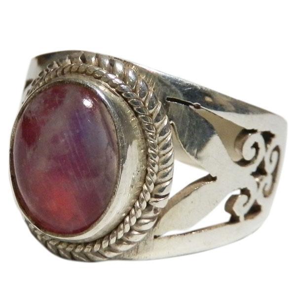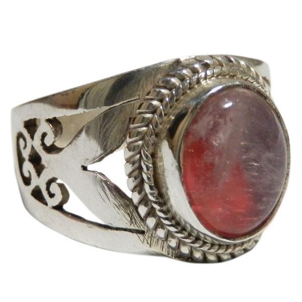 ■☆アジアン雑貨 ネパール銀職人 ピンクムーンストーン・リング (PNR-14)