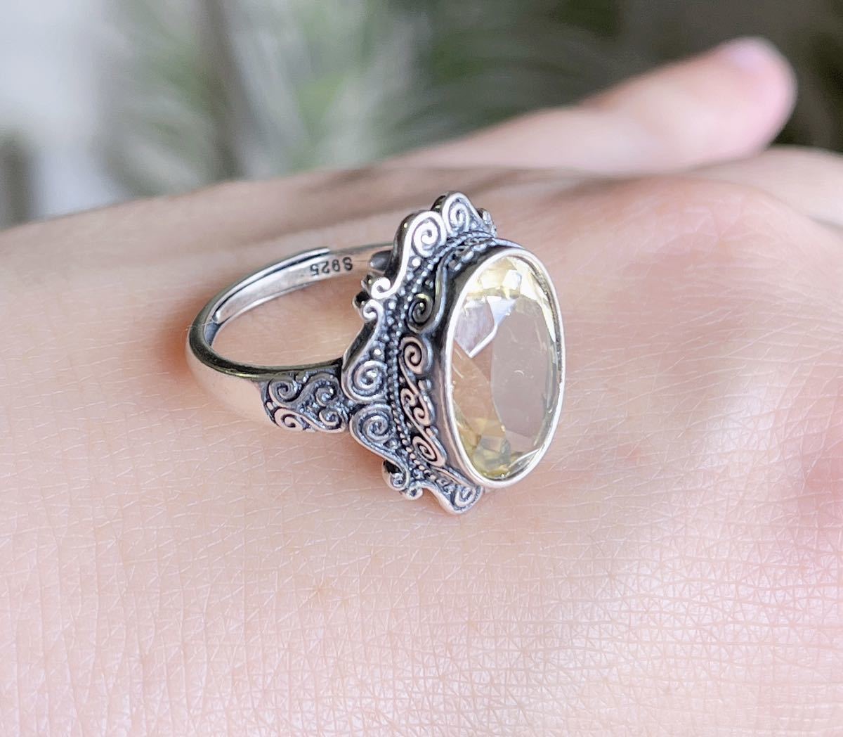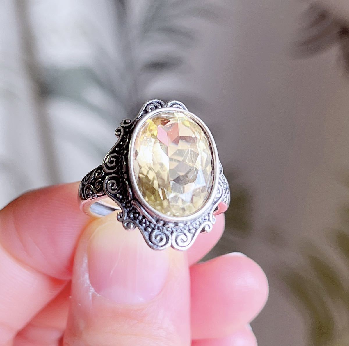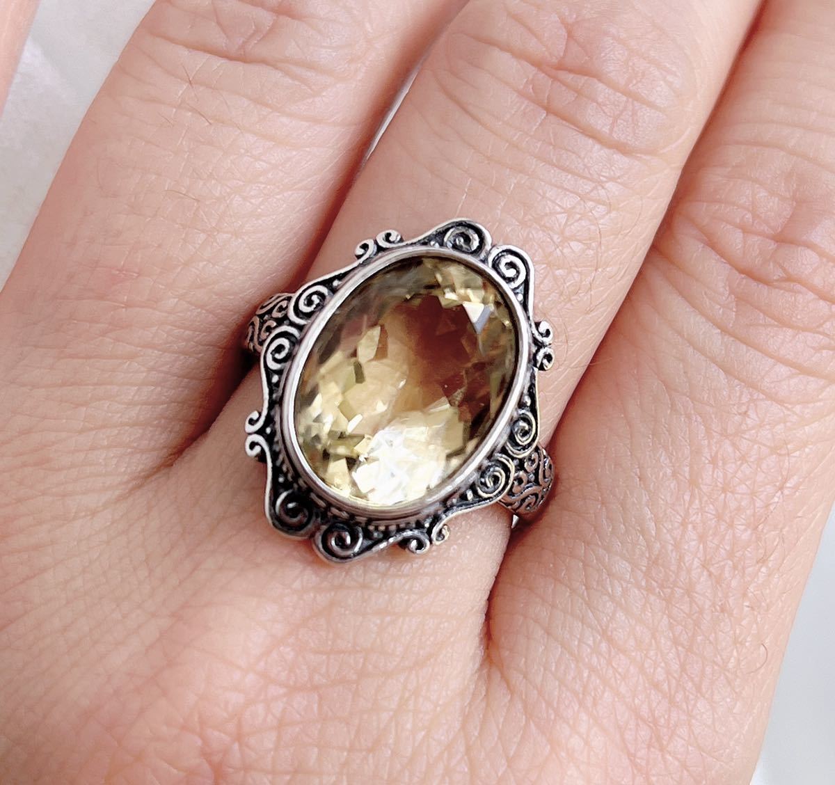 天然石 高級品シトリン(黄水晶)リングのサイズ約14.5mm*20.5mm*7.2mm;