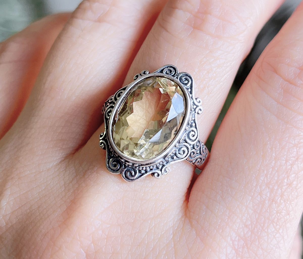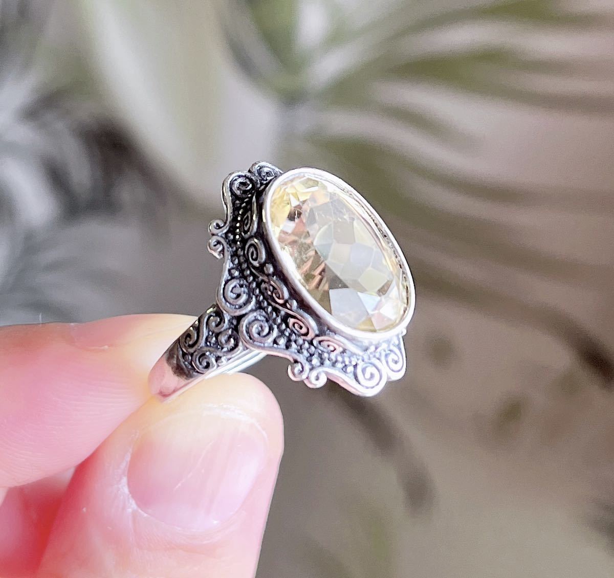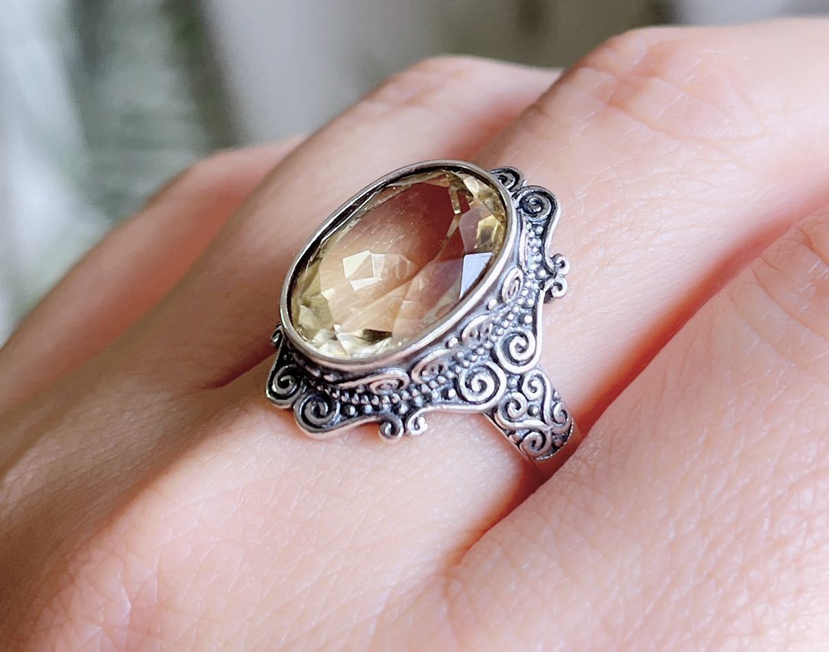 天然石 高級品シトリン(黄水晶)リングのサイズ約14.5mm*20.5mm*7.2mm;