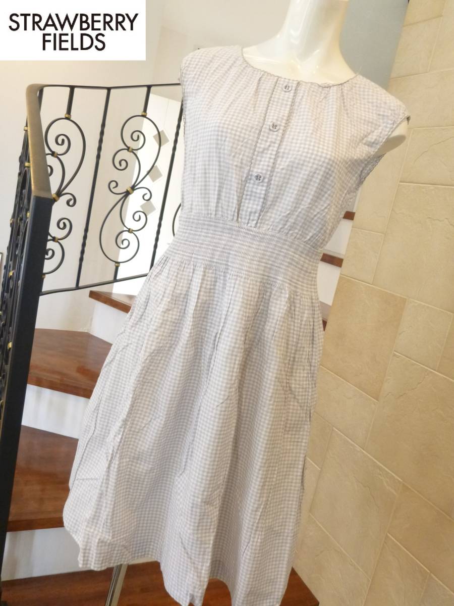 美品 STRAWBERRY-FIELDS ストロベリーフィールズ ★ グレー×白 ギンガムチェック柄 ワンピース 2 M相当
