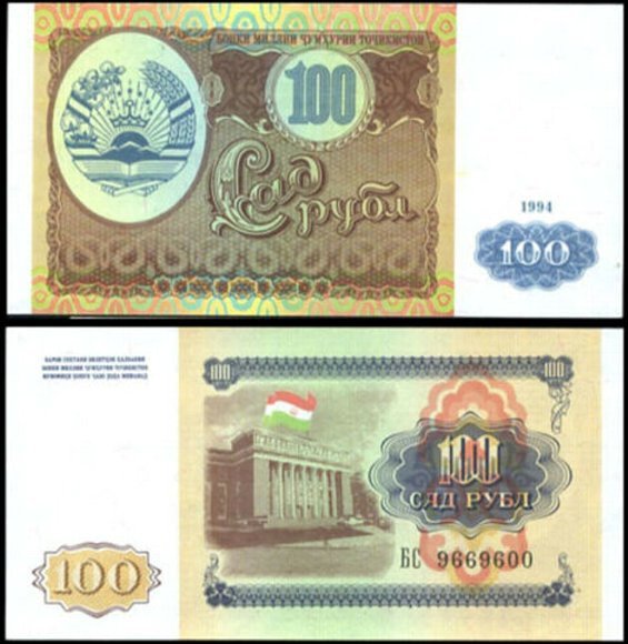 (B-908) タジキスタン 100ルーブル紙幣 1994年