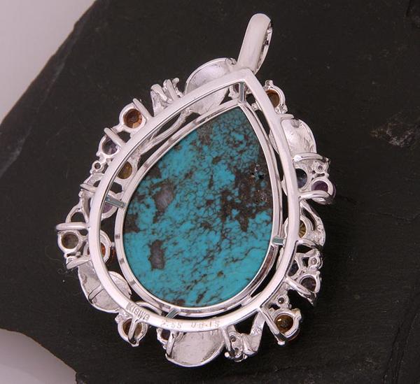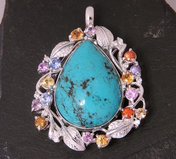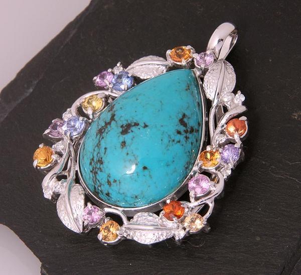 ペアシェイプのトルコ石と、マルチカラーストーンのペンダントです。